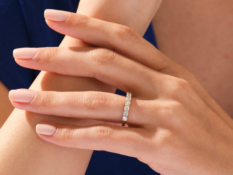 14K Solid Gold Baguette Half-Eternity Wedding Ring Halfway Natural Diamond Bridal Ring