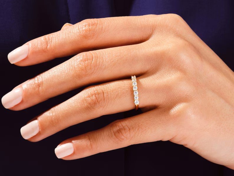14K Solid Gold Brilliant Round-Cut Seven-Stone Anniversary Ring For Women