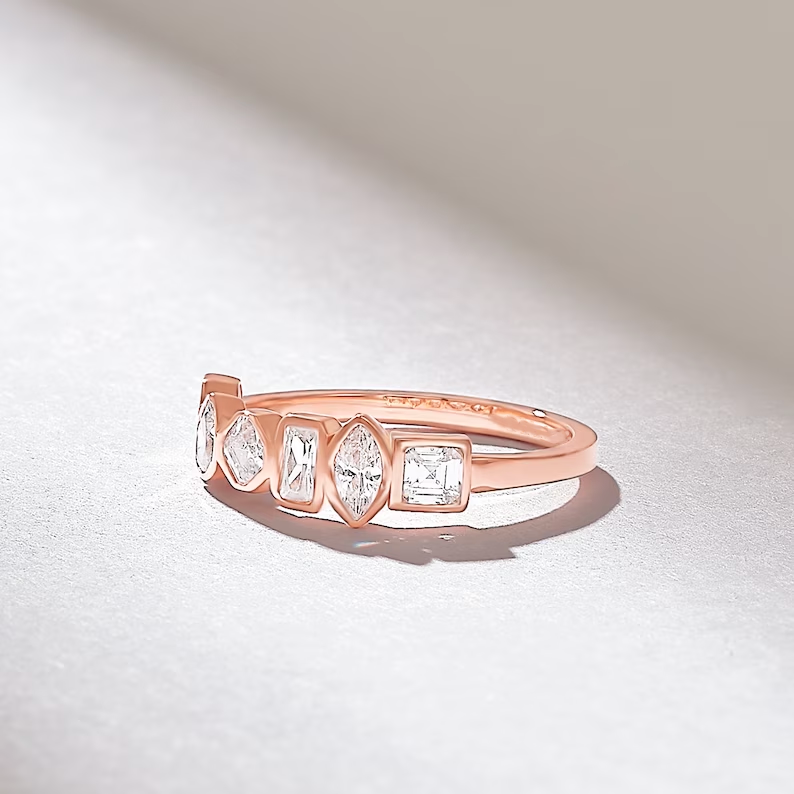 Celebrate individuality with this 0.7ctw Mixed Cut Natural Diamond Wedding Ring, a one-of-a-kind piece handcrafted in 18k solid gold. Available in White, Rose, or Yellow Gold, this ring artfully combines five distinct diamond cuts to create a truly unique, sculptural design.