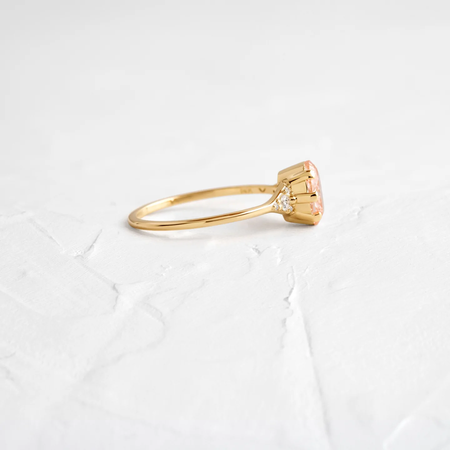 The soft pink of the diamond adds a sense of elegance and romance. The oval cut maximizes the stone’s brilliance and sparkle, making it one of those pieces that simply screams glamour. Ideal for engagements or special occasions, the ring exemplifies luxury but also adheres to eco-friendly conditions.