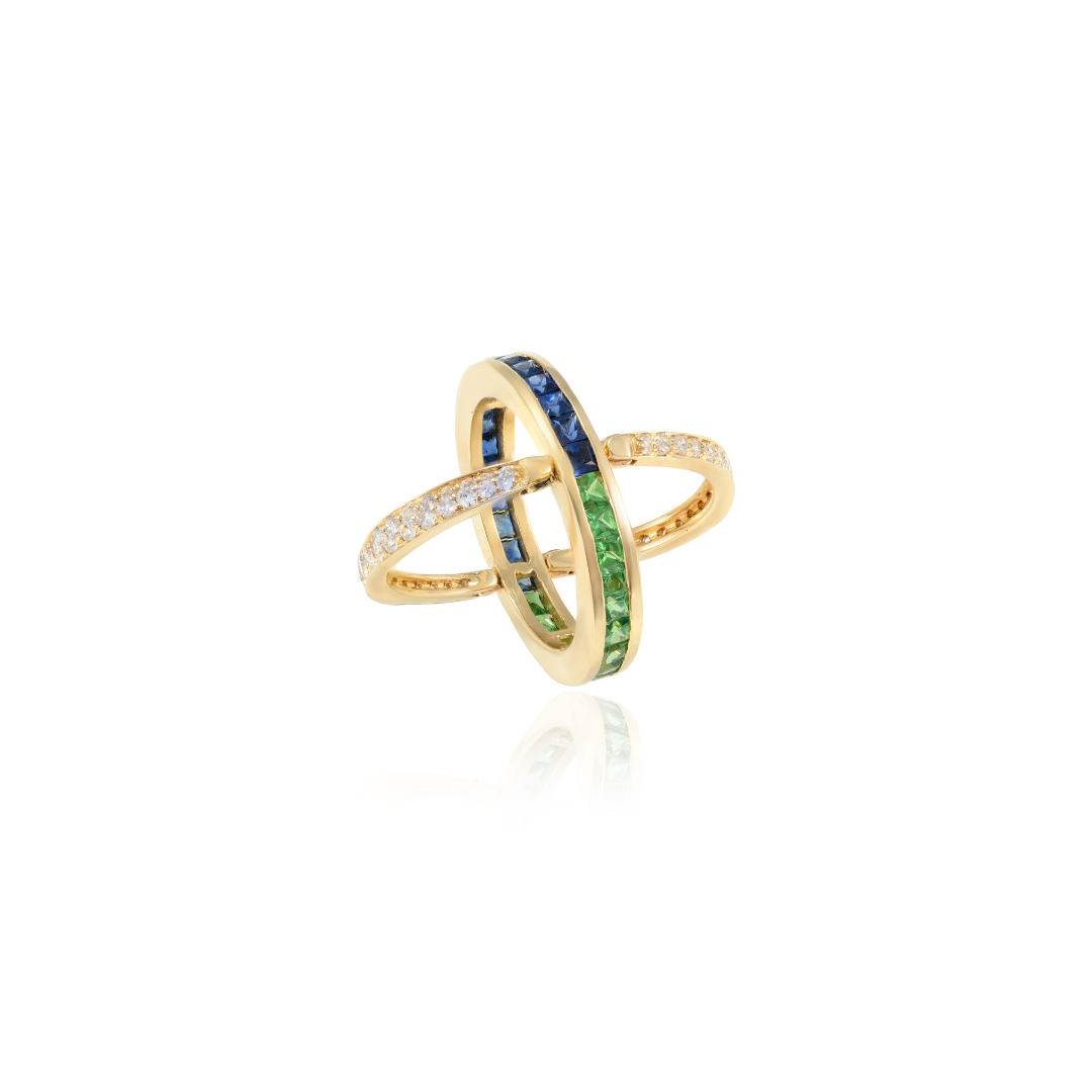 The convertible design of this emerald, sapphire, and diamond ring is so unique. It’s both playful and elegant.