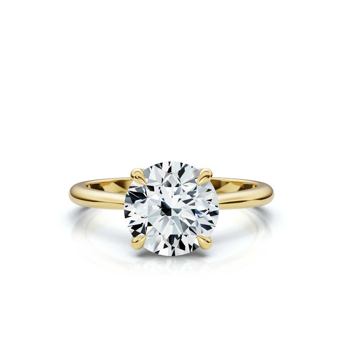 A romantic 14K gold tulip engagement ring featuring a 2ct round lab-grown diamond (F color, VS2 clarity, Super Cut) with six lab-grown diamond accents. Available in White, Rose, or Yellow Gold. IGI & BIS certified.