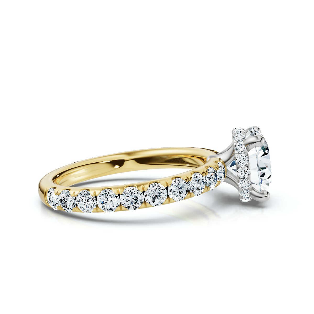 Exquisite 14K Gold Lab-Grown Diamond Engagement Ring featuring a 2ct center stone and 0.96ct side diamonds. Available in White, Rose & Yellow Gold.