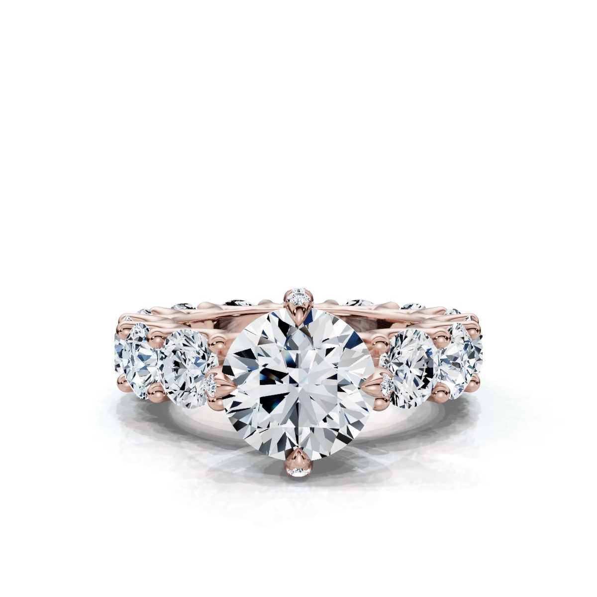 Elegant 14K gold lab-grown diamond ring with 2ct F VS2 Super Cut diamond & 4.39ct round side diamonds. IGI & BIS Hallmarked for quality assurance.