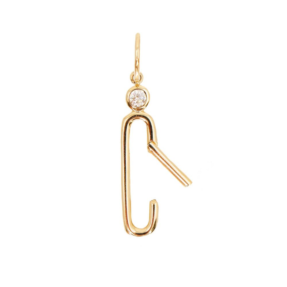 14K Gold Bezel Moissanite Diamond Paperclip Clasp Pendant