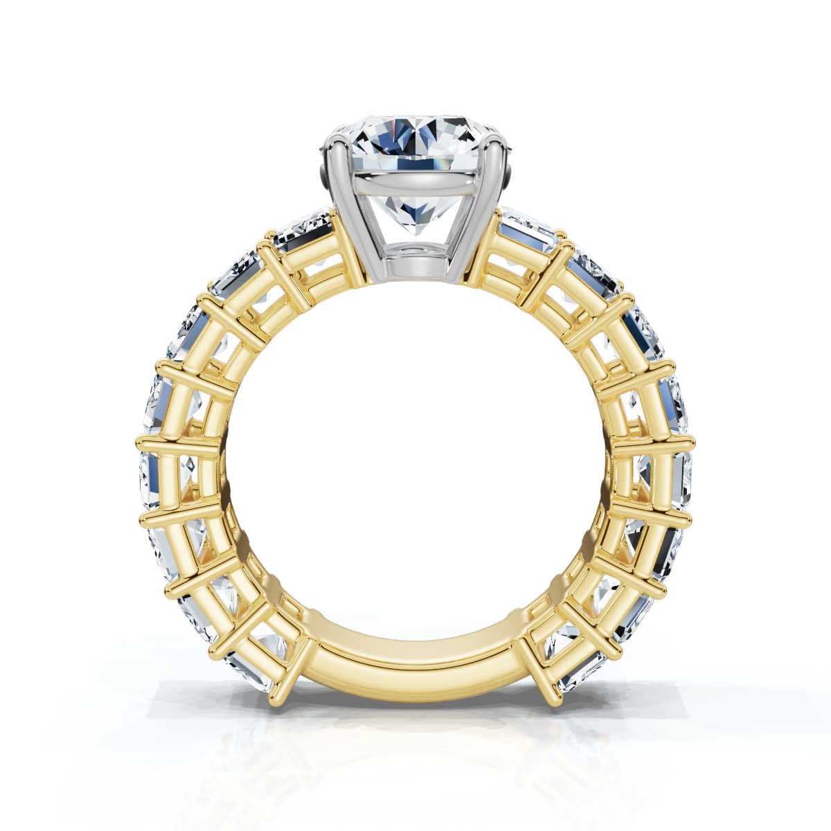 14k Gold Buguette & Round Cut Moissanite Diamond Engagement Ring