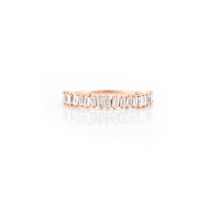 14K rose gold half eternity band with 0.48 ct GH COLOR, VS-SI Clarity baguette natural diamonds. GIA Certified, BIS Hallmarked. Elegant & stackable.