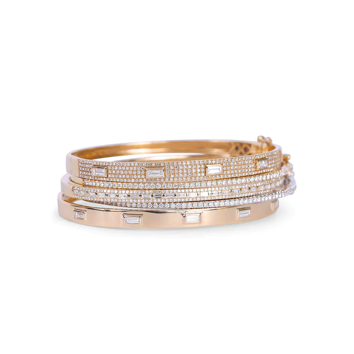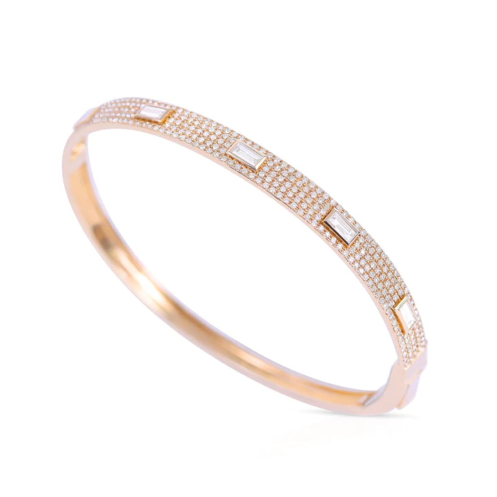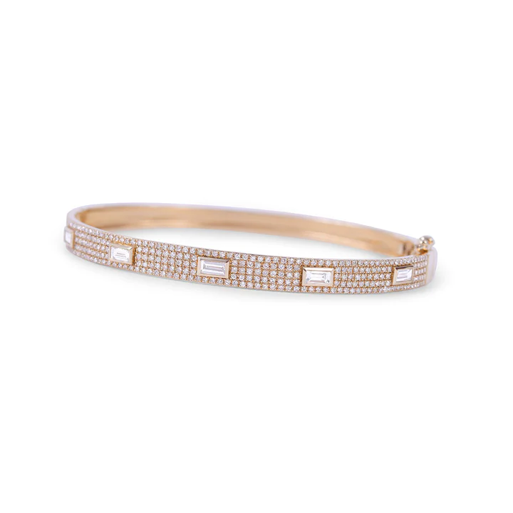 14k Gold Diamond Pave Bangle With Inset Baguette Diamonds