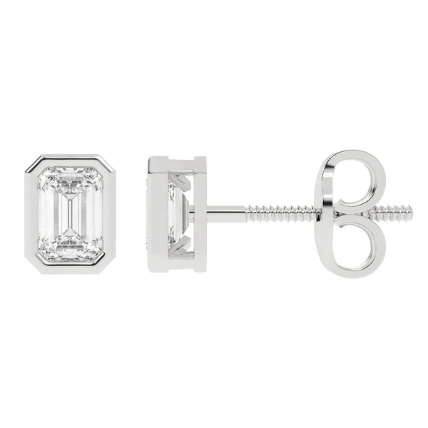 14k Gold Moissanite Diamond Bezel Emerald Cut Studs