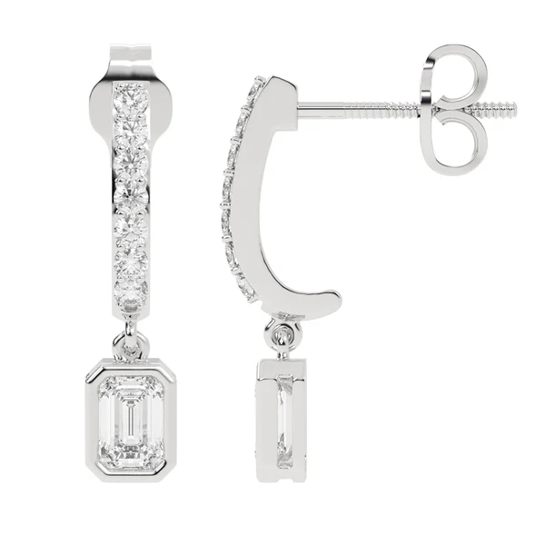 “Elegant 14K Gold Moissanite Diamond Dangling Hoops Emerald Cut Earring – a stunning design with emerald-cut Moissanite diamonds in dangling hoops for a modern, radiant style.”