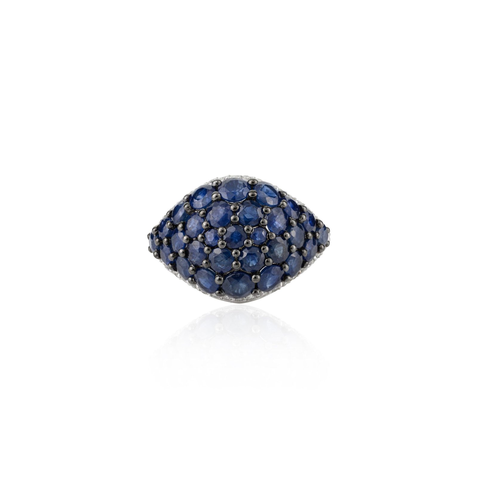The sapphires are carefully set in a secure setting, ensuring durability and allowing light to enhance their natural brilliance. The 5.2 mm wide shank provides a substantial frame for the gemstones, offering comfort and a balanced aesthetic.