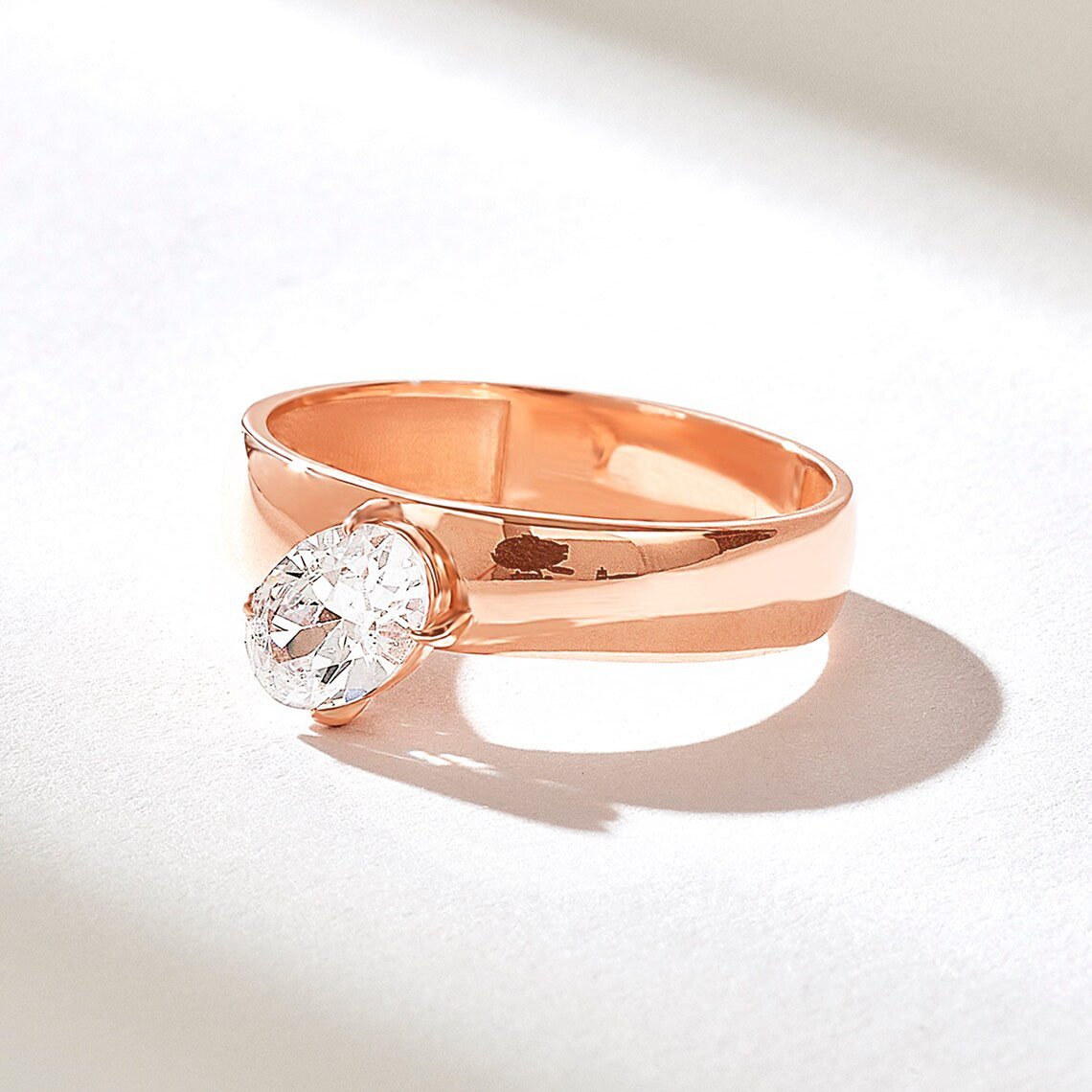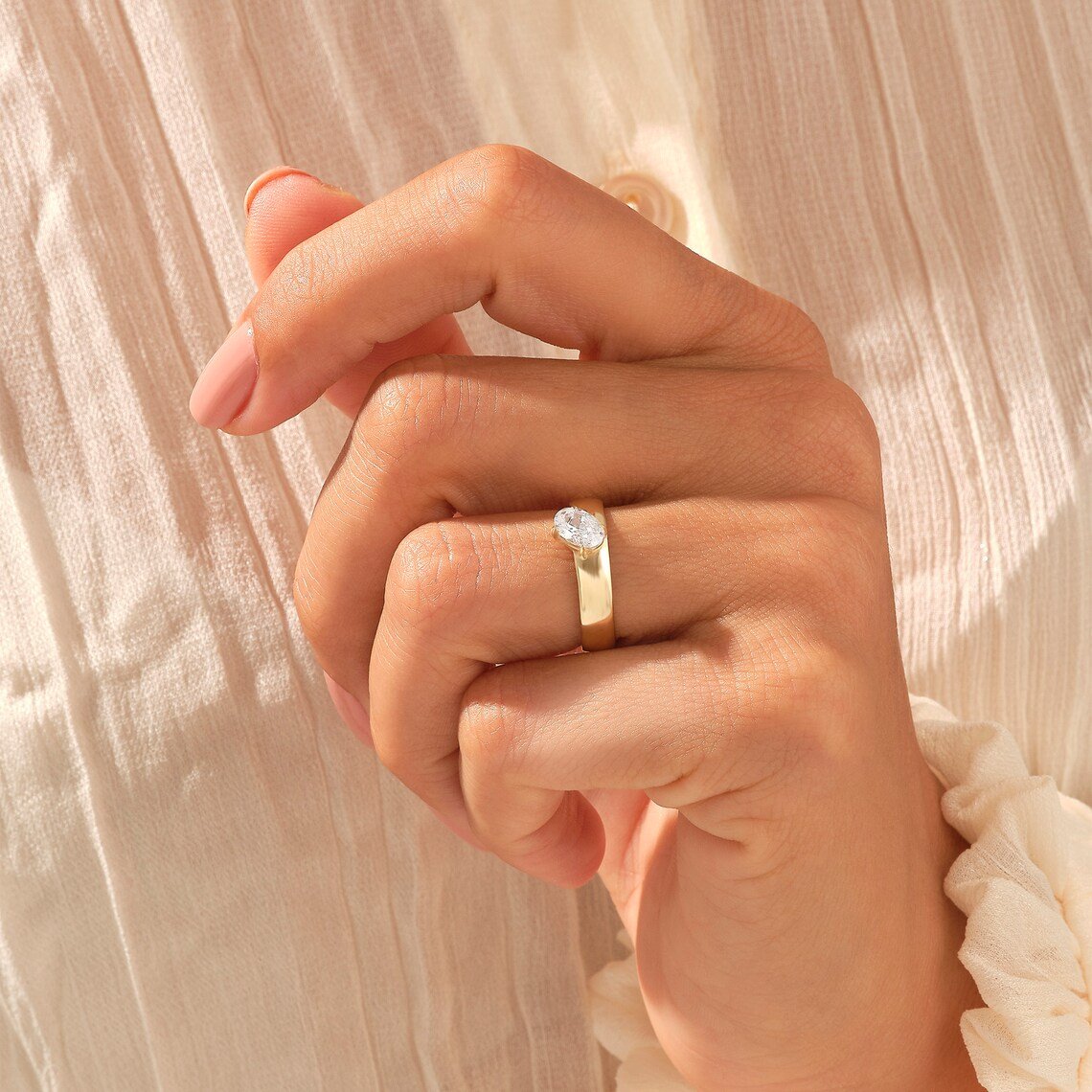 Bold 14K Gold Solitaire Band Ring featuring a 0.53 ct D-E-F color, VVS clarity natural diamond in a thick oval design. Available in White, Rose, Yellow Gold with BIS Hallmark.