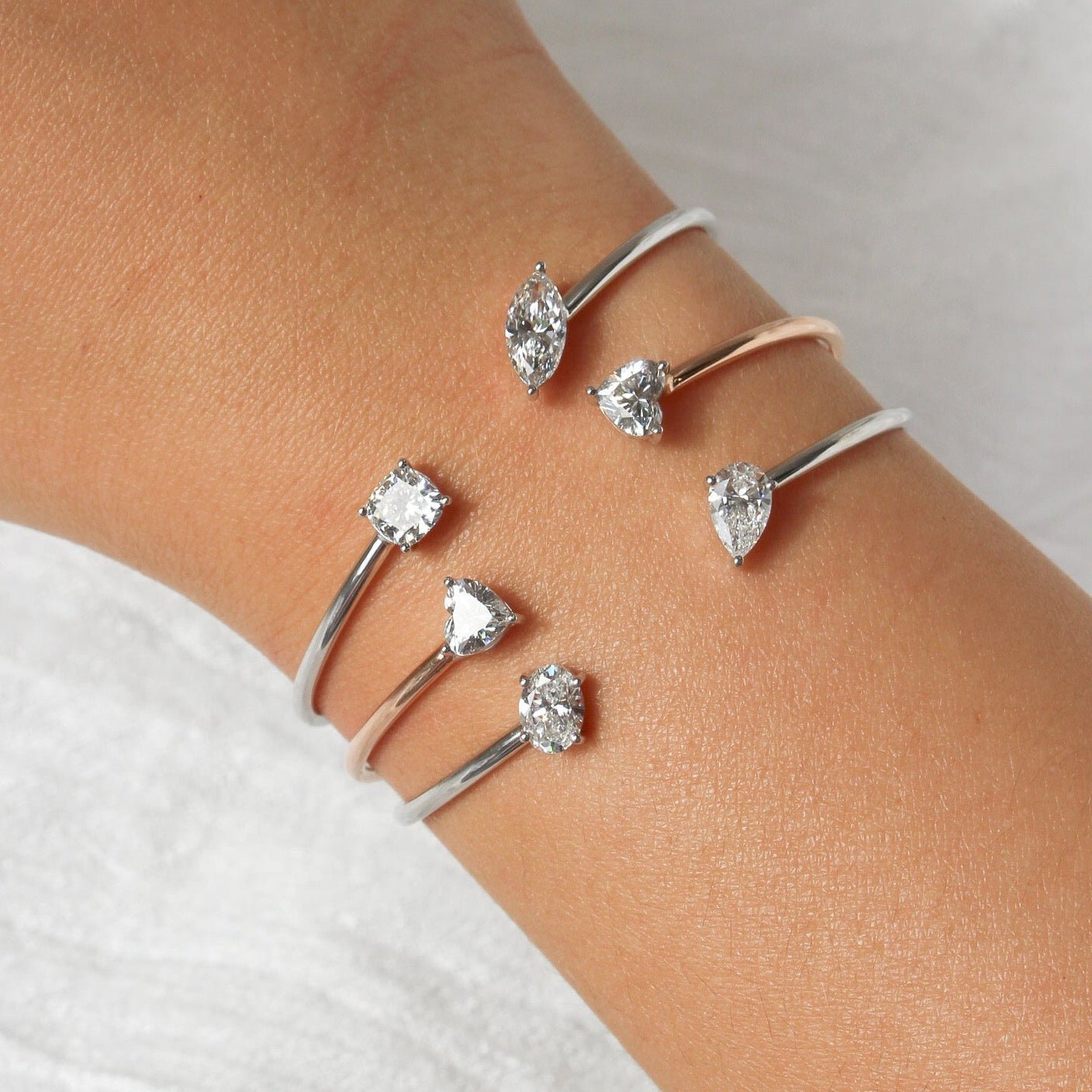 - Design: A harmonious blend of pear and oval diamonds that wrap around the wrist with grace and style.