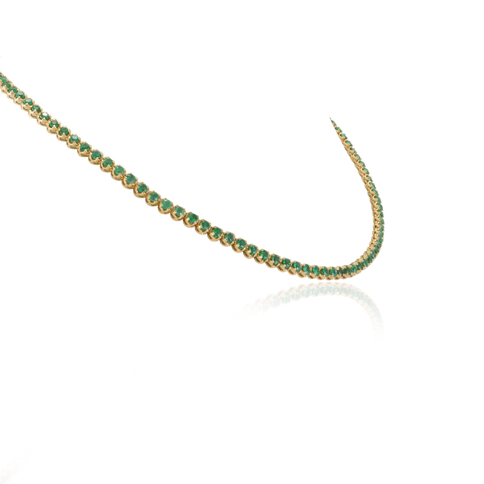 Luxurious and timeless, this 14K solid gold tennis necklace features round-cut emeralds—perfect for elegant, statement-making style.