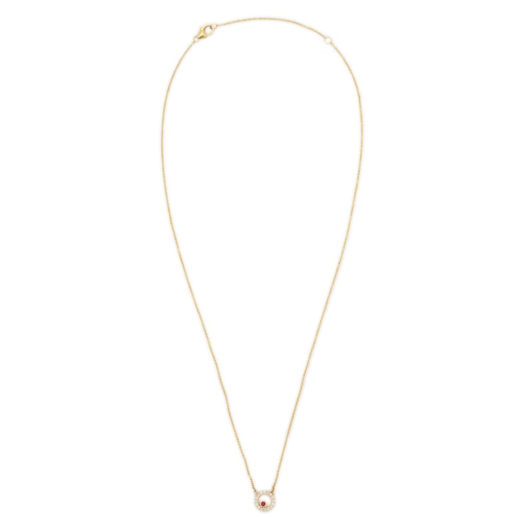 Exquisite 14K solid gold necklace with a rich ruby and sparkling diamonds. A timeless piece symbolizing love, passion, and elegance.