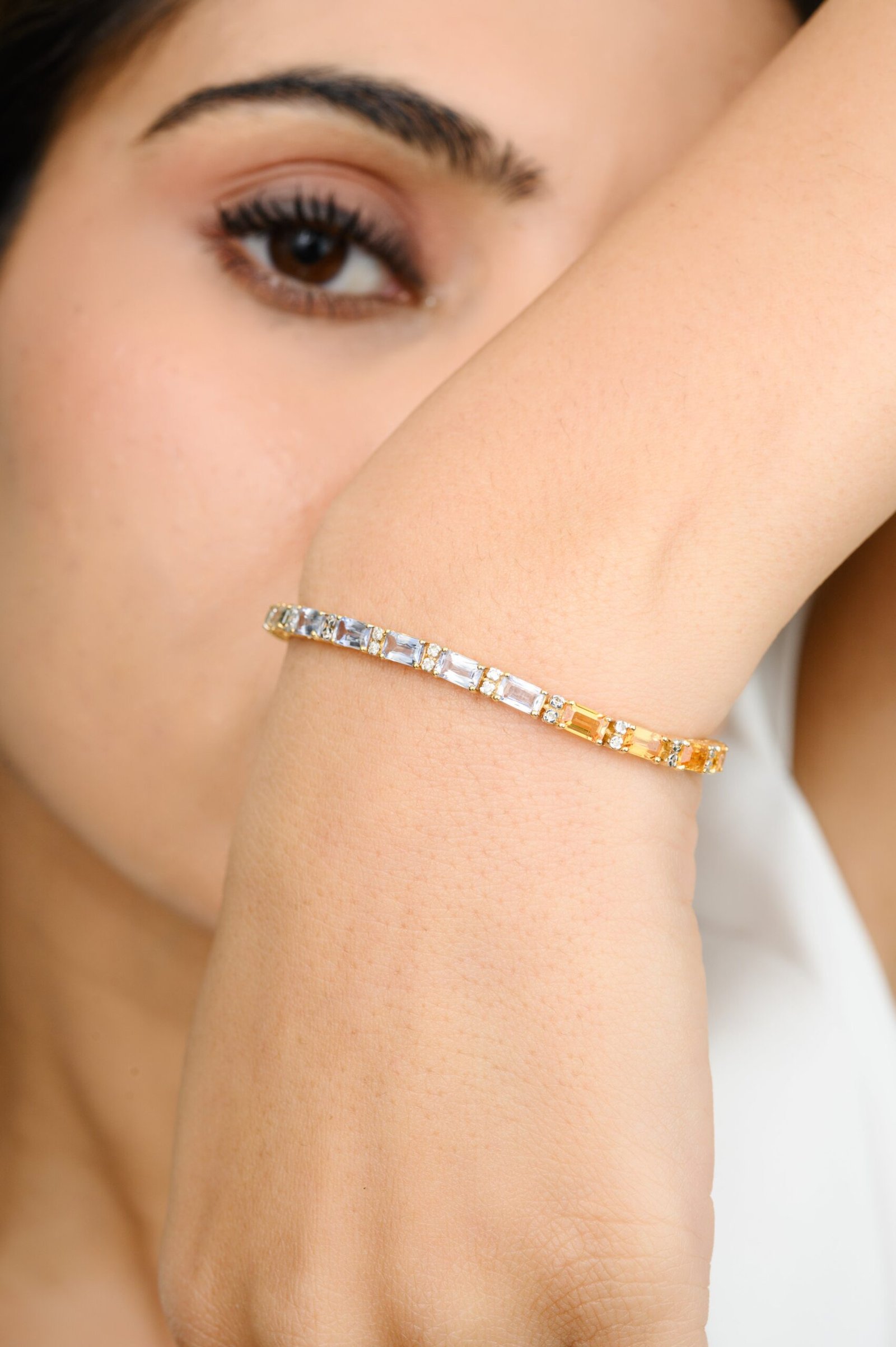 Crafted with a keen eye for detail, the bracelet features a classic design that ensures each gemstone is securely held while allowing light to play off their facets. With a gross weight of 9.1 grams, it offers a substantial yet comfortable feel on the wrist, making it suitable for both everyday wear and special occasions.