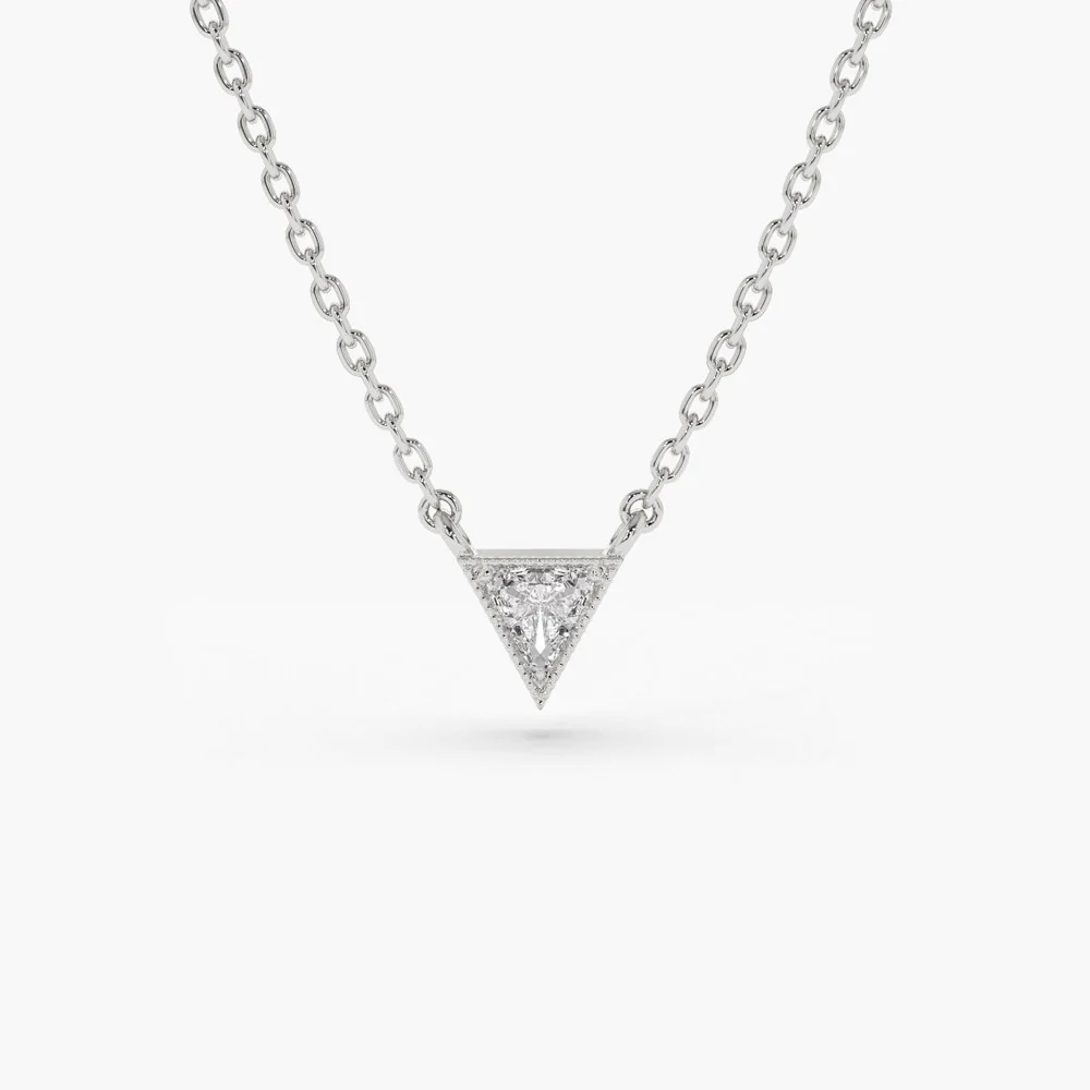 Introducing the beautiful 14K Gold Triangle Cut Natural Diamond Solitaire Necklace, a stunning piece that blends modern design with timeless elegance.