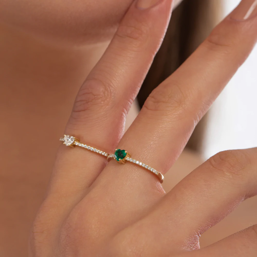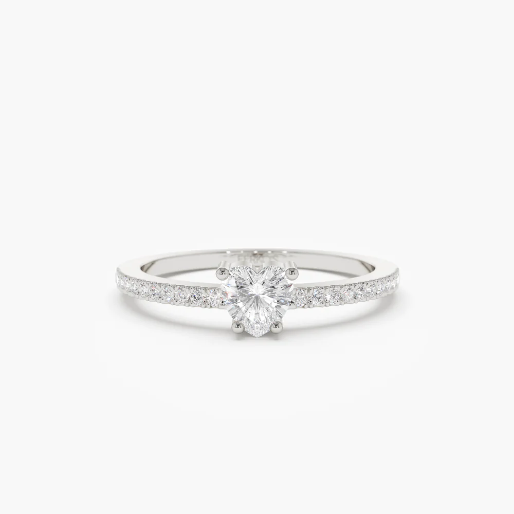 At the center of this elegant ring lies a brilliant heart-shaped natural diamond (4mm), symbolizing affection and devotion. It is beautifully complemented by 22 round natural diamonds (1.10mm each), bringing the total diamond weight to 0.40 carats. All stones are of GH color and VS-SI clarity, ensuring radiant brilliance and exceptional quality.