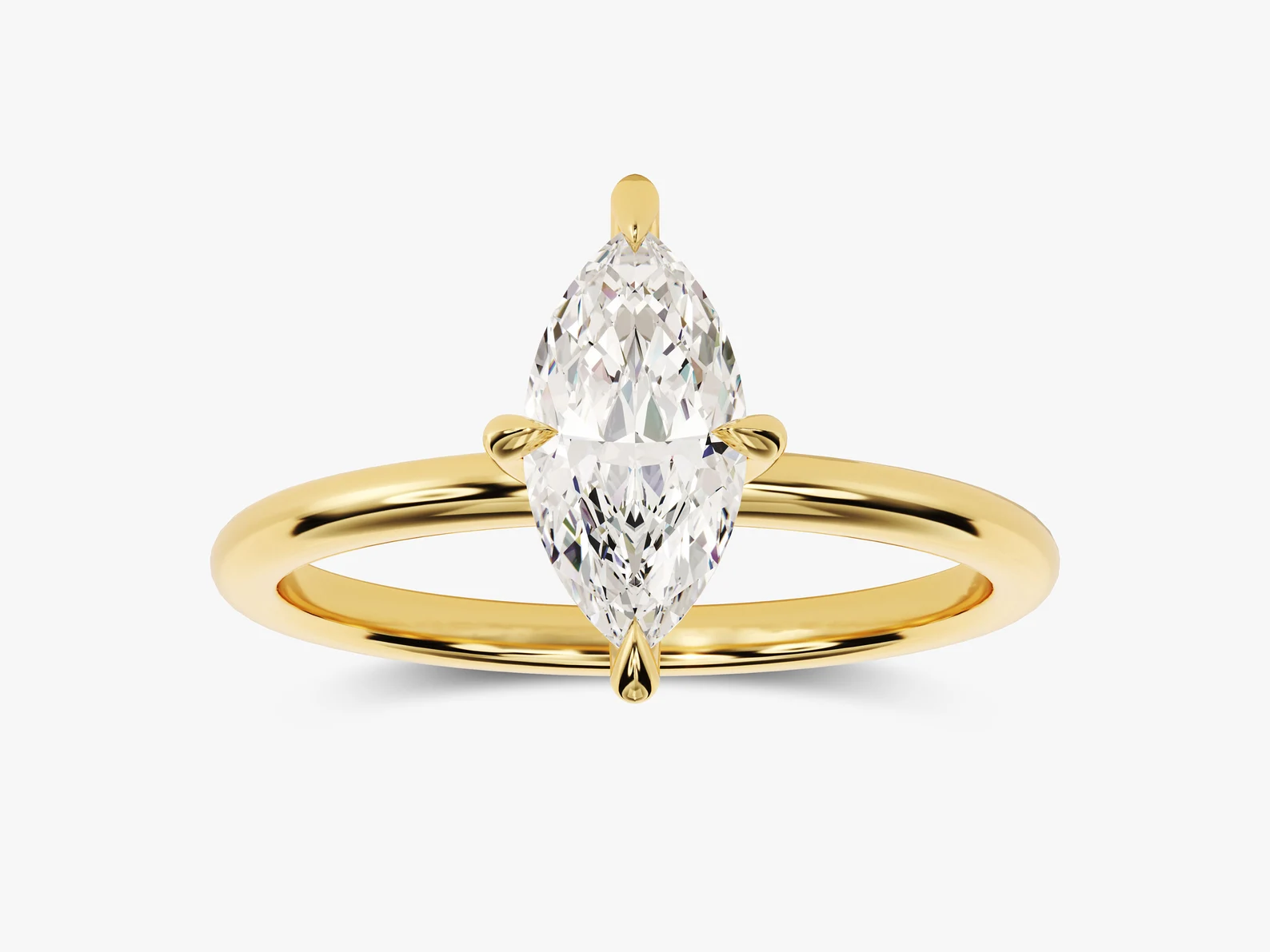 Timeless and effortlessly elegant, the 14K Marquise Cut Diamond Engagement Ring is a refined symbol of love and commitment. Crafted from solid 14K gold, this simple solitaire ring features a beautifully elongated marquise-cut diamond, known for its graceful shape that maximizes brilliance and creates a flattering, slender look on the finger.