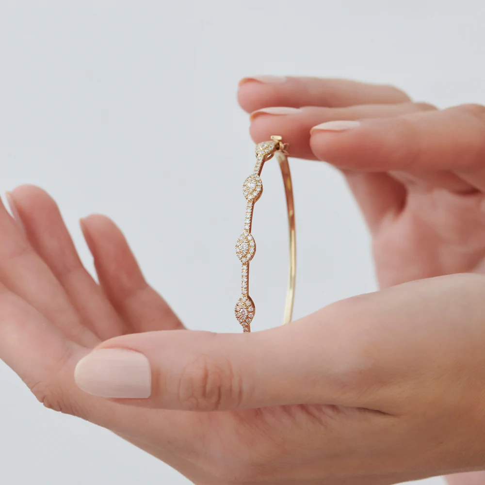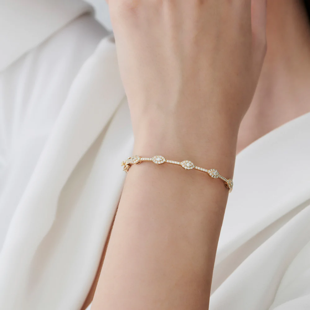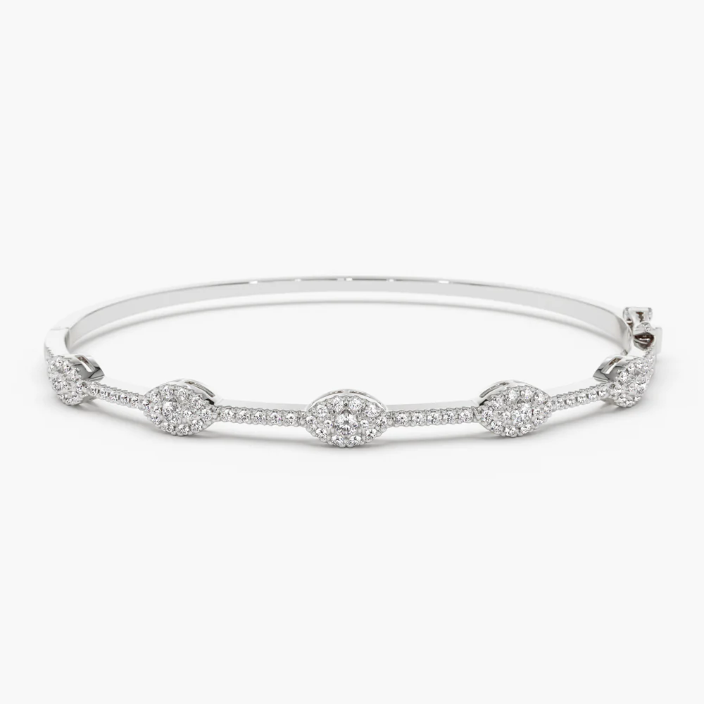Whether you’re looking for a luxurious everyday accessory, a meaningful anniversary gift, or an elegant special occasion piece, this diamond bangle embodies grace and brilliance. Its intricate marquise-inspired design ensures a unique, eye-catching aesthetic, making it a must-have for any fine jewelry lover.
