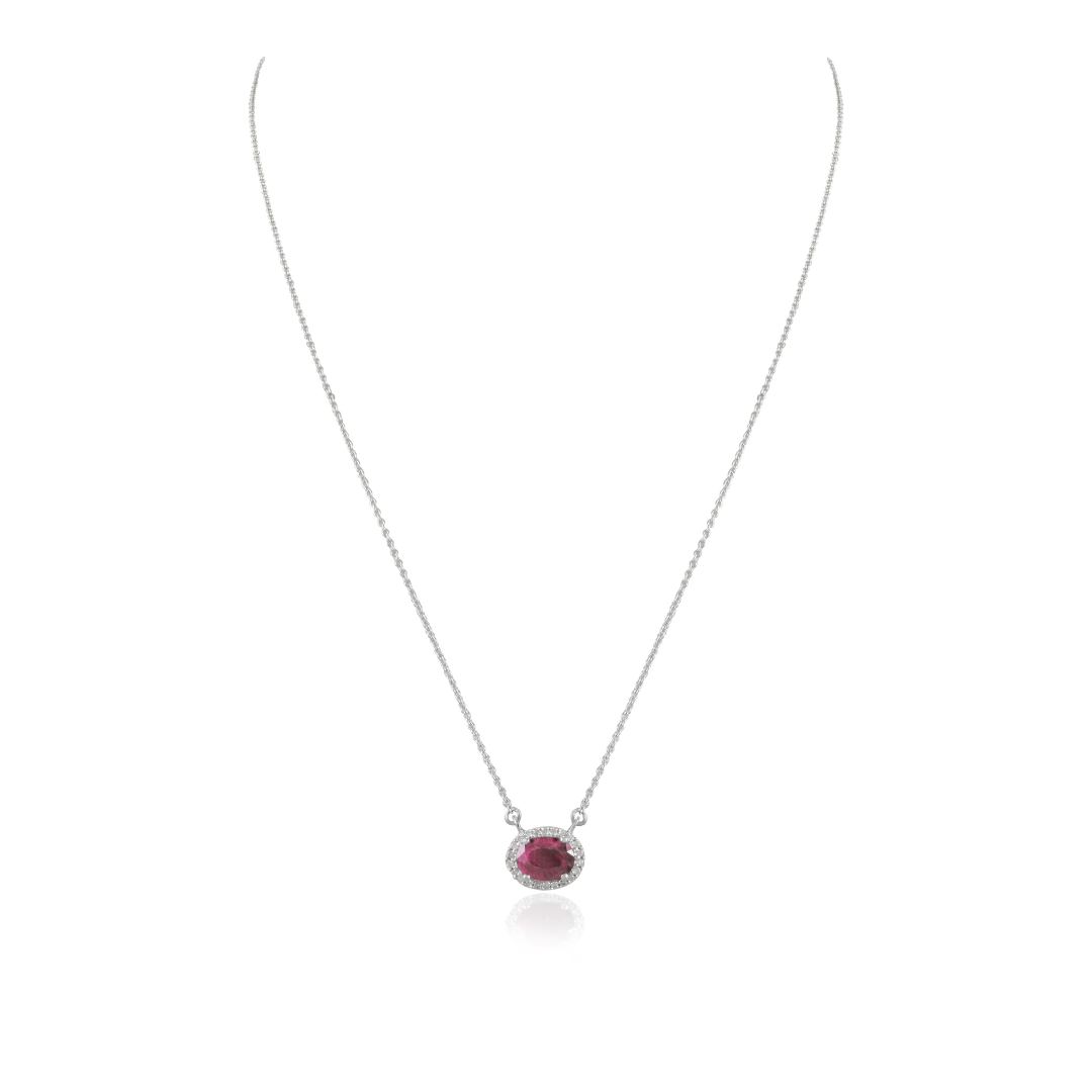 Elevate your style with the 14K Solid Gold Oval Ruby & Diamond Necklace, a luxurious accessory that captures the essence of timeless beauty and elegance. Perfect for adding a touch of sophistication to any ensemble, this necklace is a versatile addition to any jewelry collection.