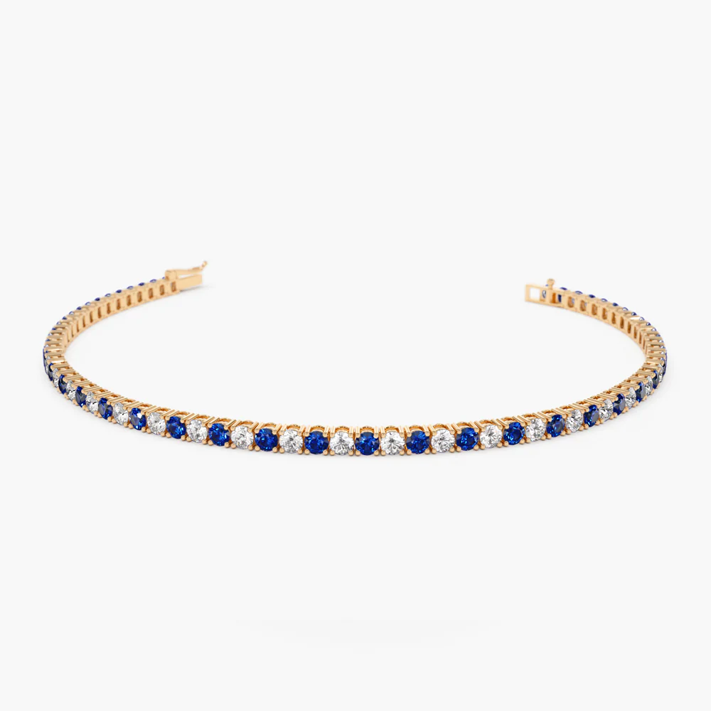 14K Solid Gold Prong Setting Diamond and Sapphire Tennis Bracelet