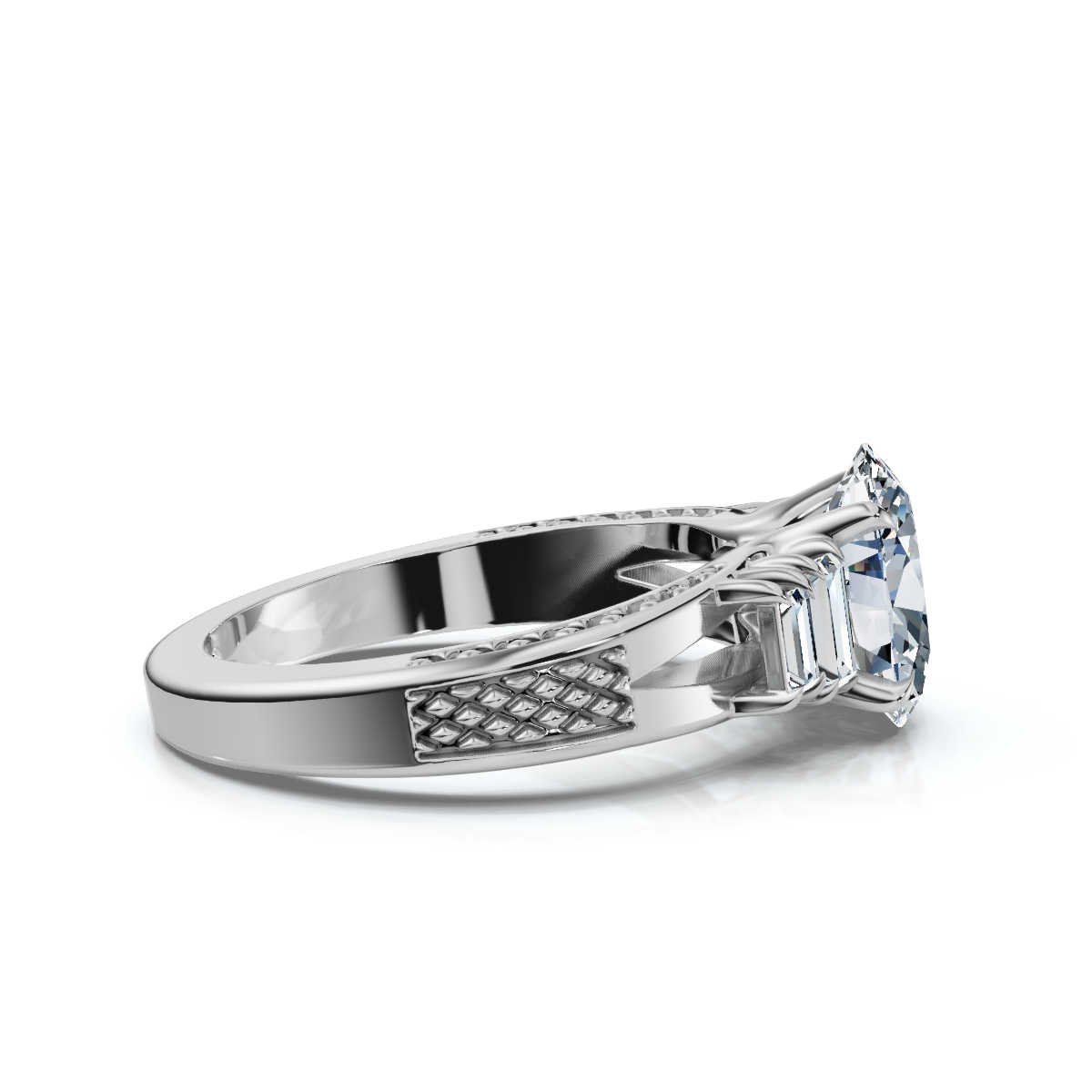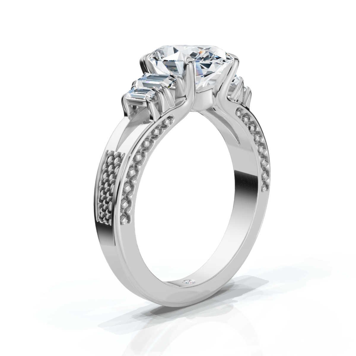 - Side Stones: Moissanite Diamonds (0.43 ct total, Round & Baguette, 5 stones)