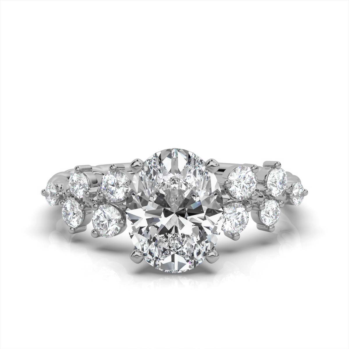 - Center Stone: 2ct Oval Moissanite Diamond (Super Cut)