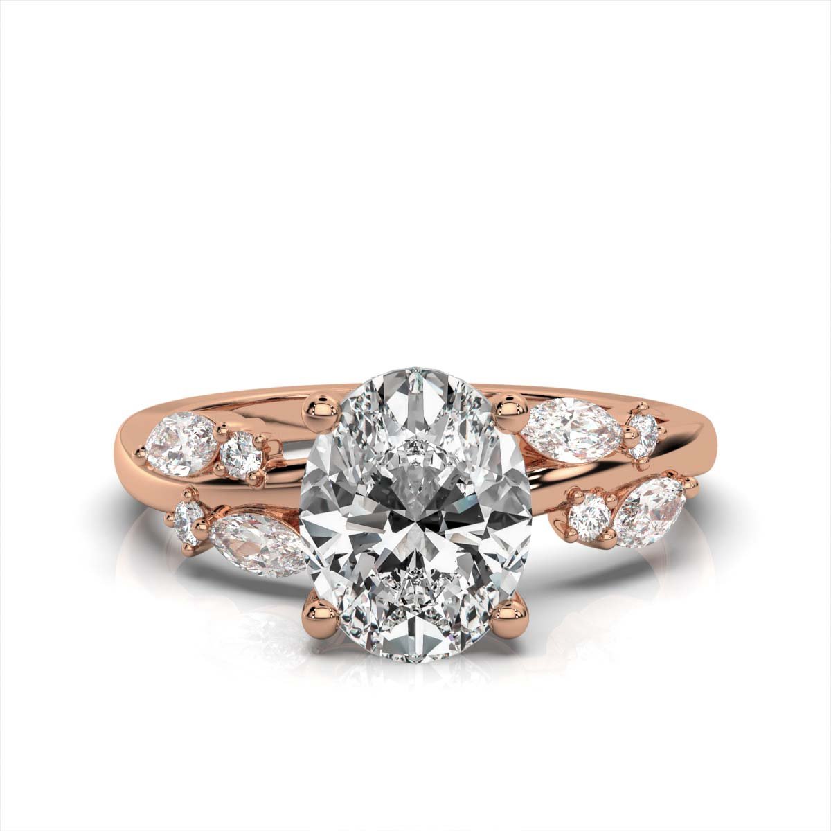 - Center Stone: 2ct Oval Moissanite Diamond (Super Cut)
