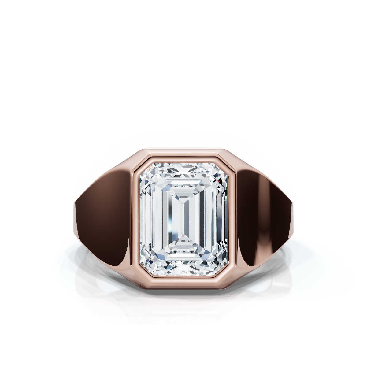 A 2ct Emerald-Cut Moissanite diamond ring set in 14K solid gold with a sleek plain metal band, designed for timeless elegance.