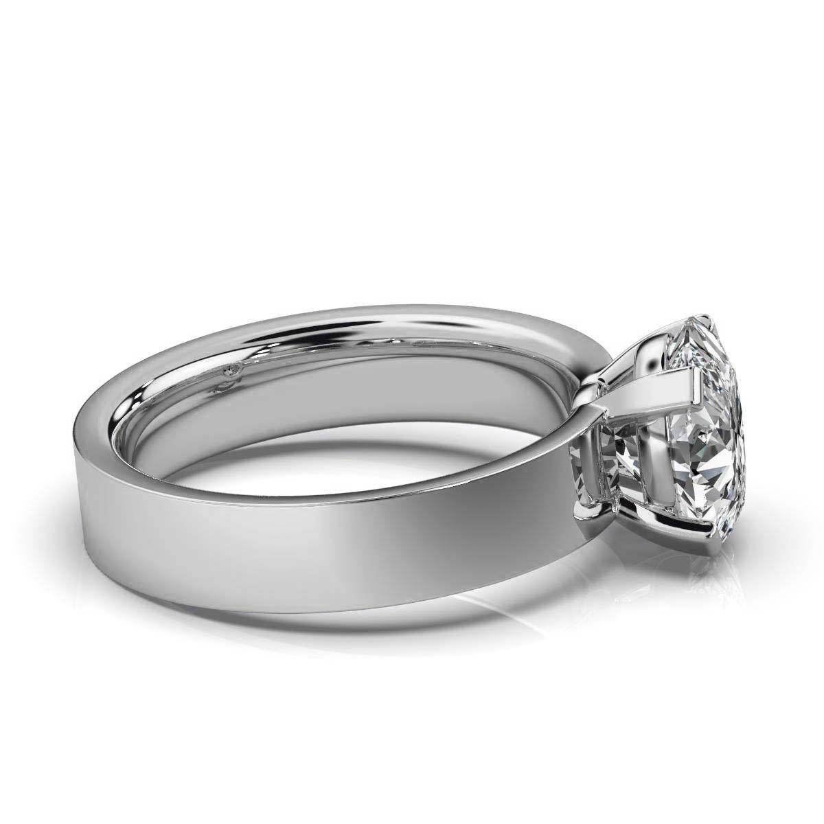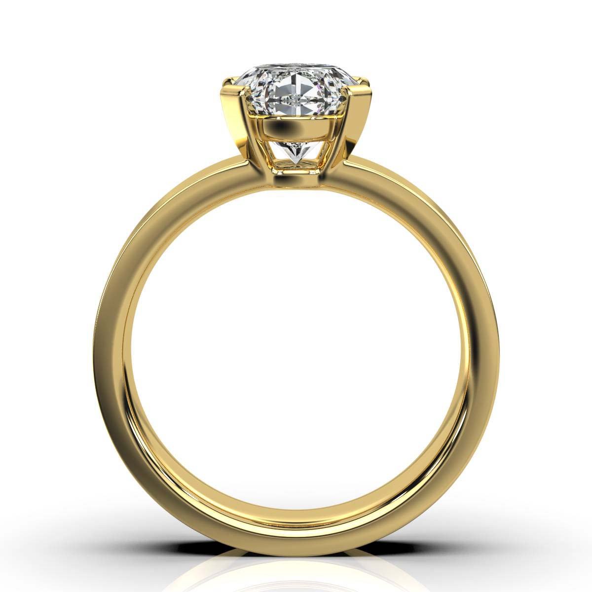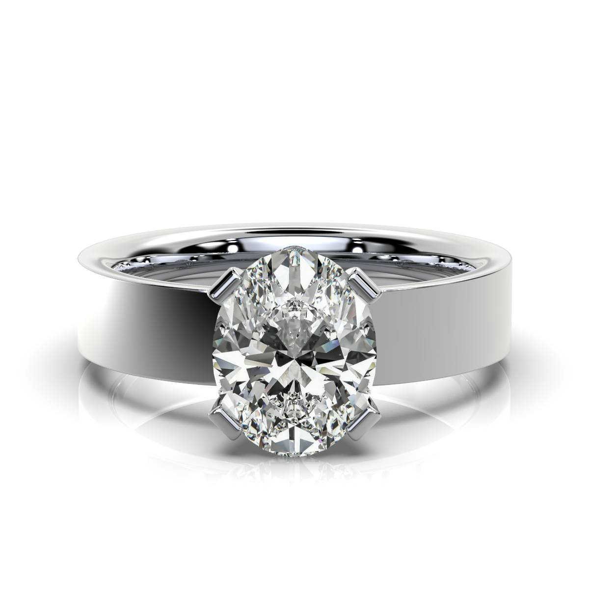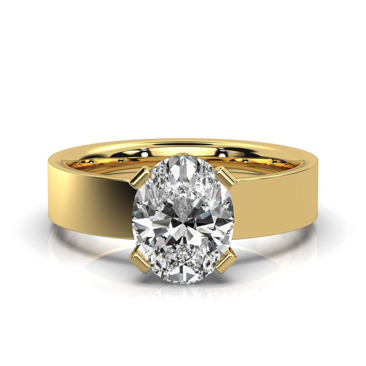 A timeless 14K gold solitaire engagement ring featuring a brilliant 2ct oval Moissanite diamond, set in a sleek and comfortable band for a classic, elegant look.