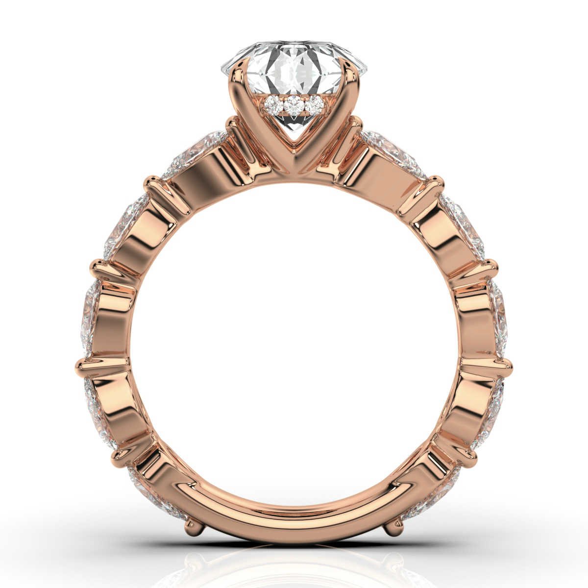 The 14K Solid Gold 3.9ct Halo Lab Grown Diamond Engagement Ring features a 2ct round center diamond surrounded by 1.86ct of round and pear side diamonds.