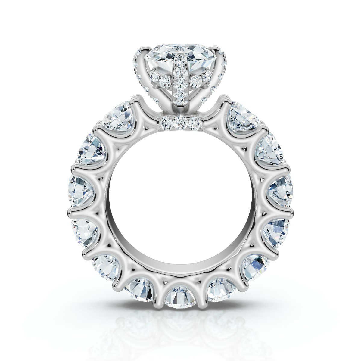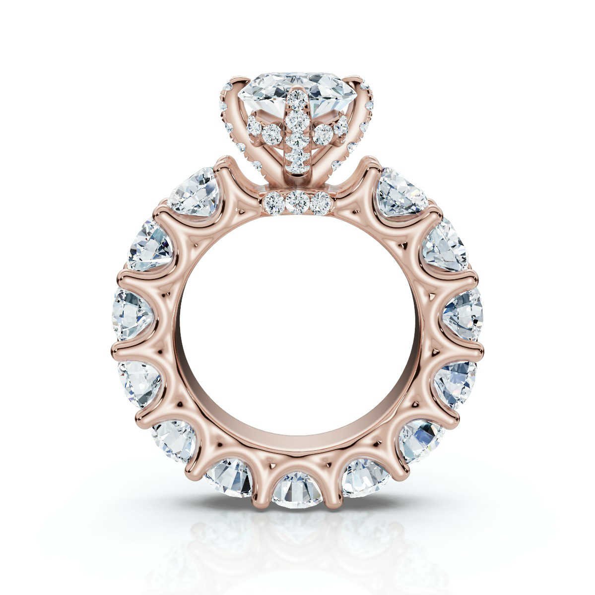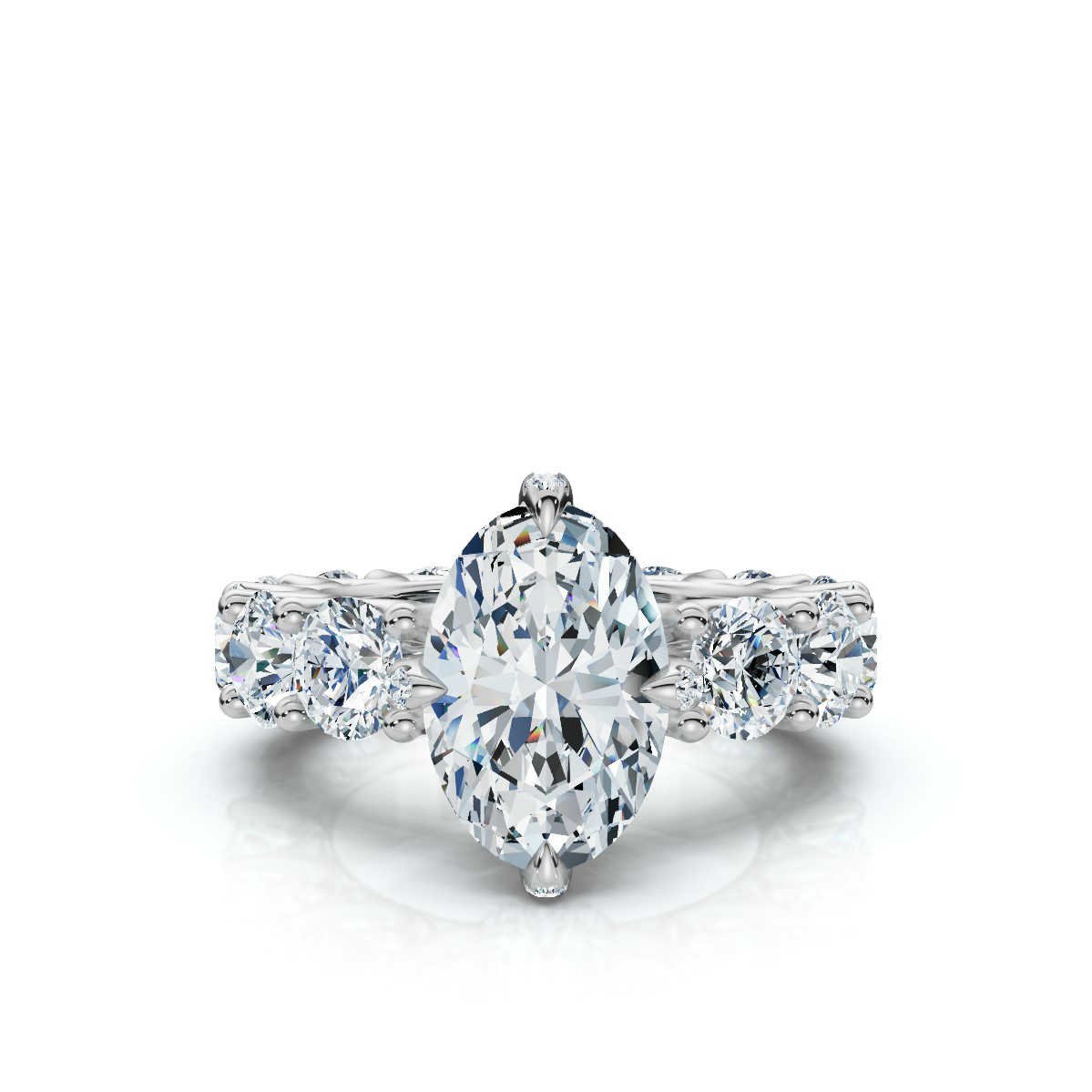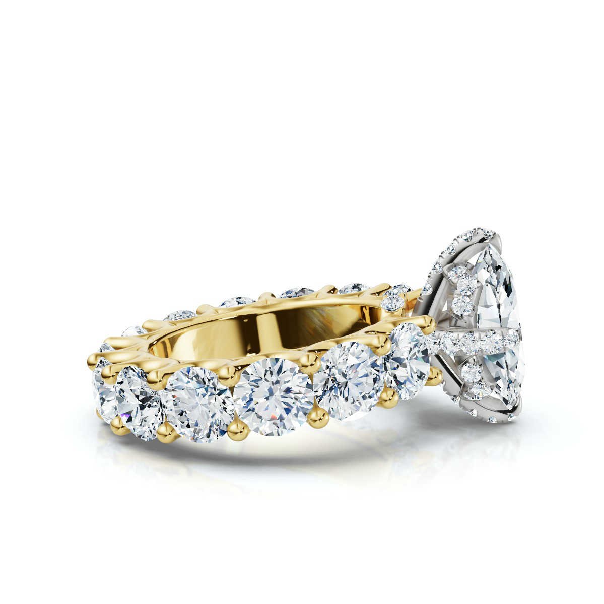 A luxurious 8.9ct solitaire lab-grown diamond engagement ring, with a 2ct oval-cut center stone and 6.89ct of round diamonds set in 14K solid gold.