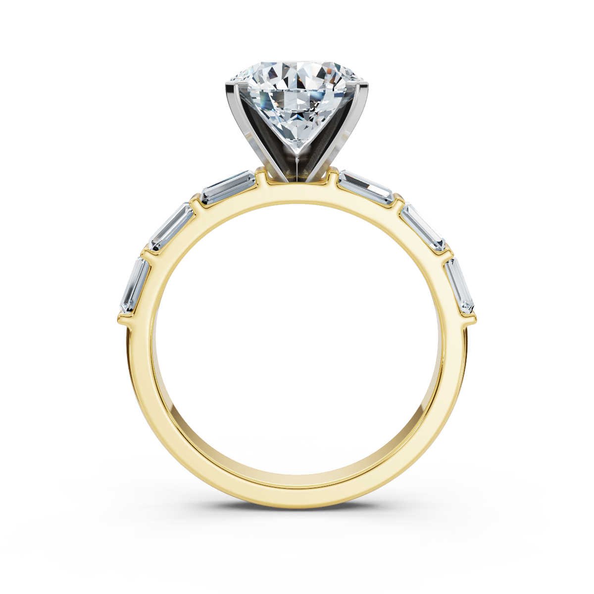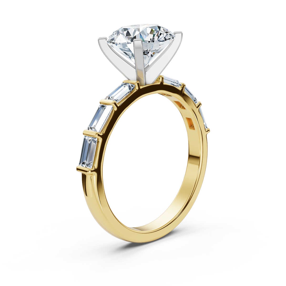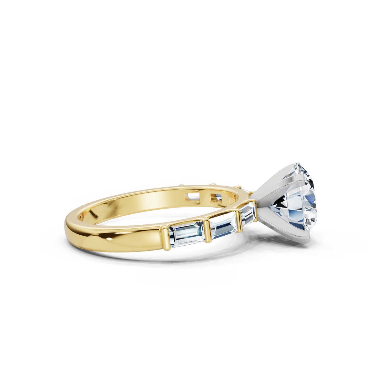 14K Solid Gold Baguette & Round Shape Lab Grown Diamond Engagement Ring