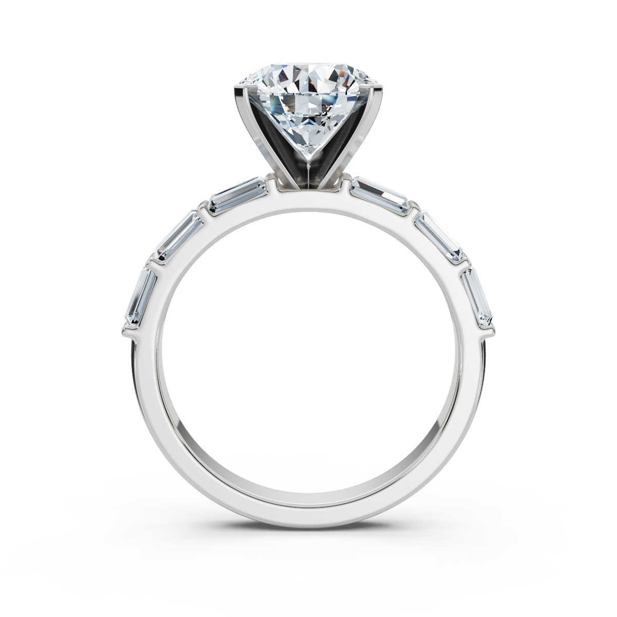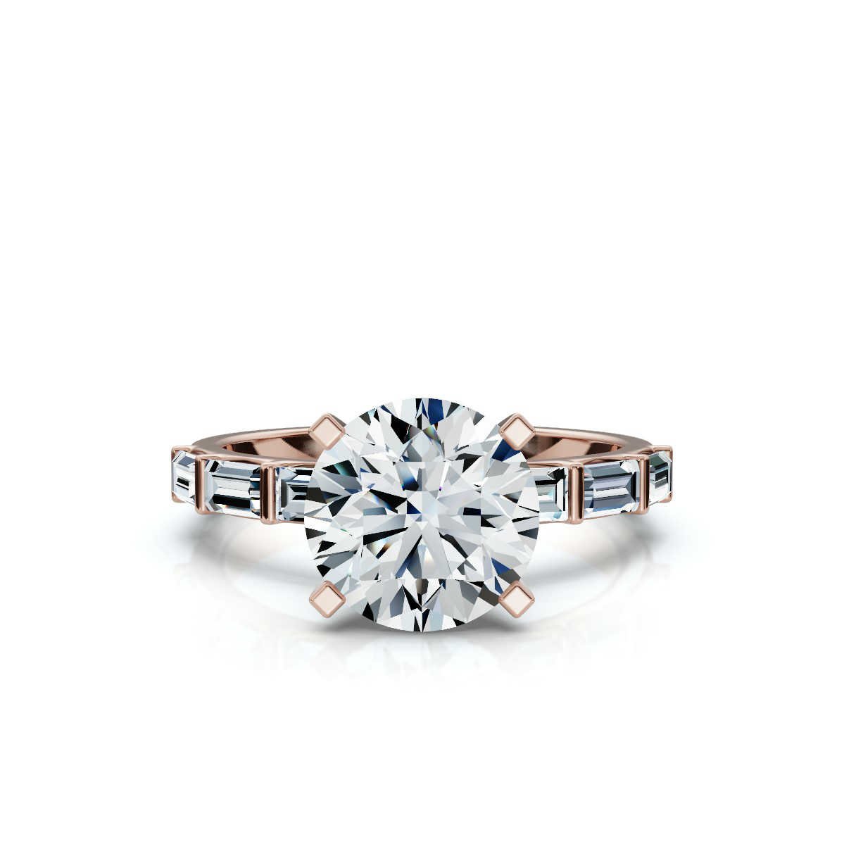 Elegant 14K Gold Baguette & Round Lab Grown Diamond Engagement Ring featuring a 2-carat center stone with baguette diamond accents. Available in white, rose, or yellow gold.