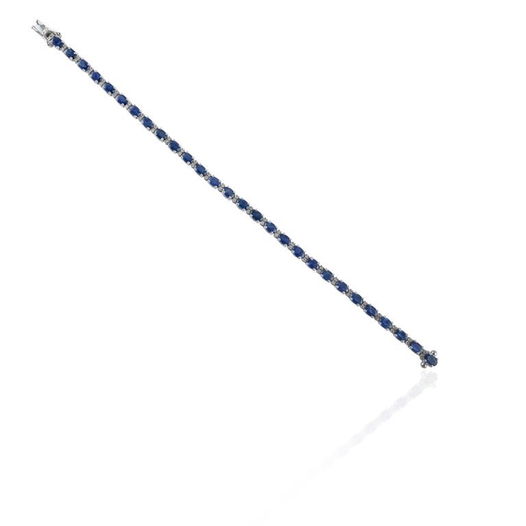 The blue sapphire and diamond combination on this tennis bracelet is absolutely stunning. It’s a timeless piece.