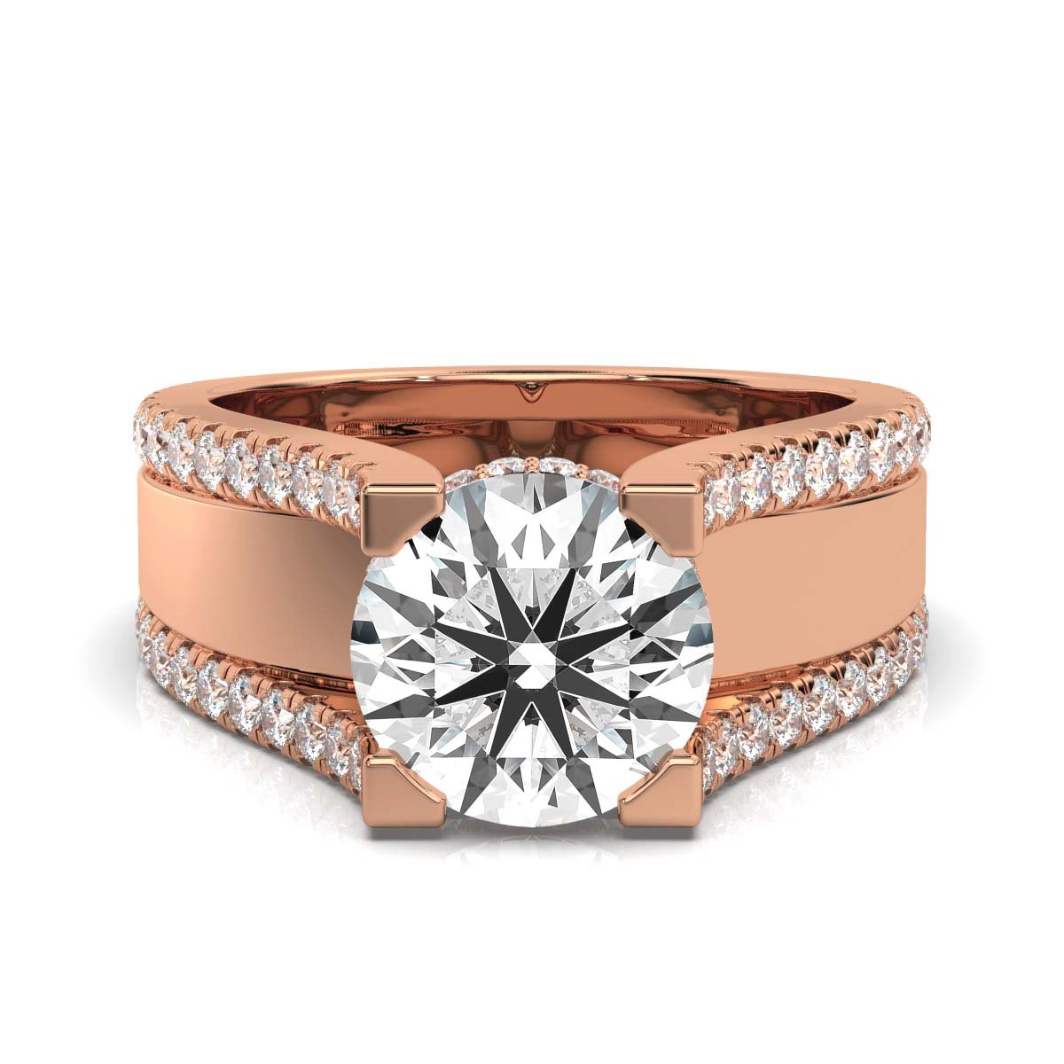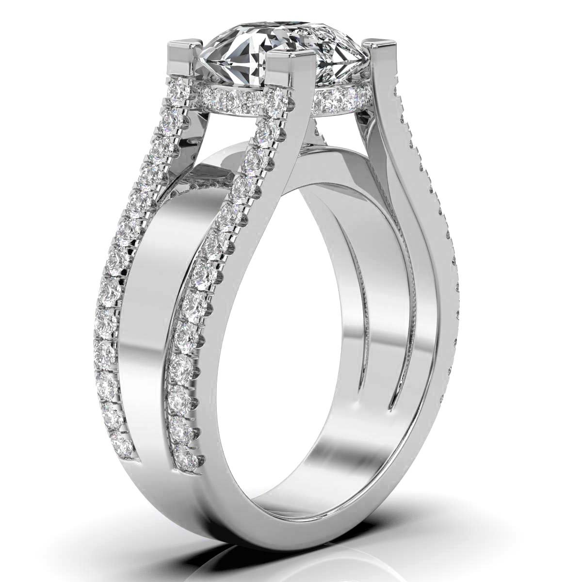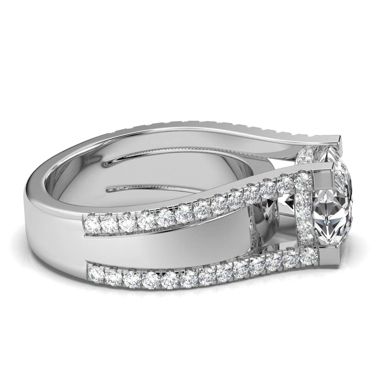 - Side Stones: 64 Round Moissanite Diamonds (0.74ct total)