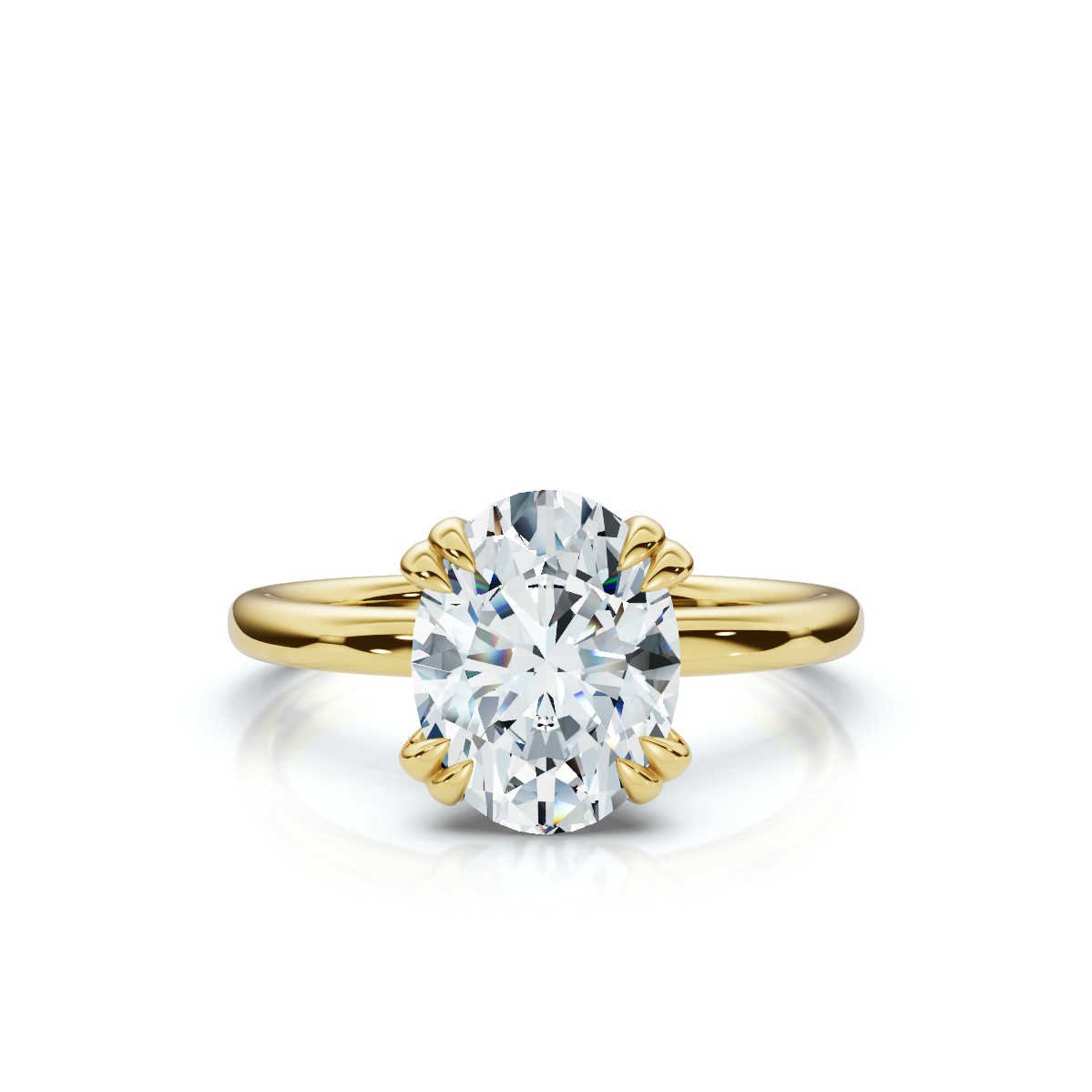 Elegant 14K Solid Gold Double Prong Lab Grown Diamond Engagement Ring featuring a 2ct oval lab-grown diamond. Available in White, Rose, or Yellow Gold.