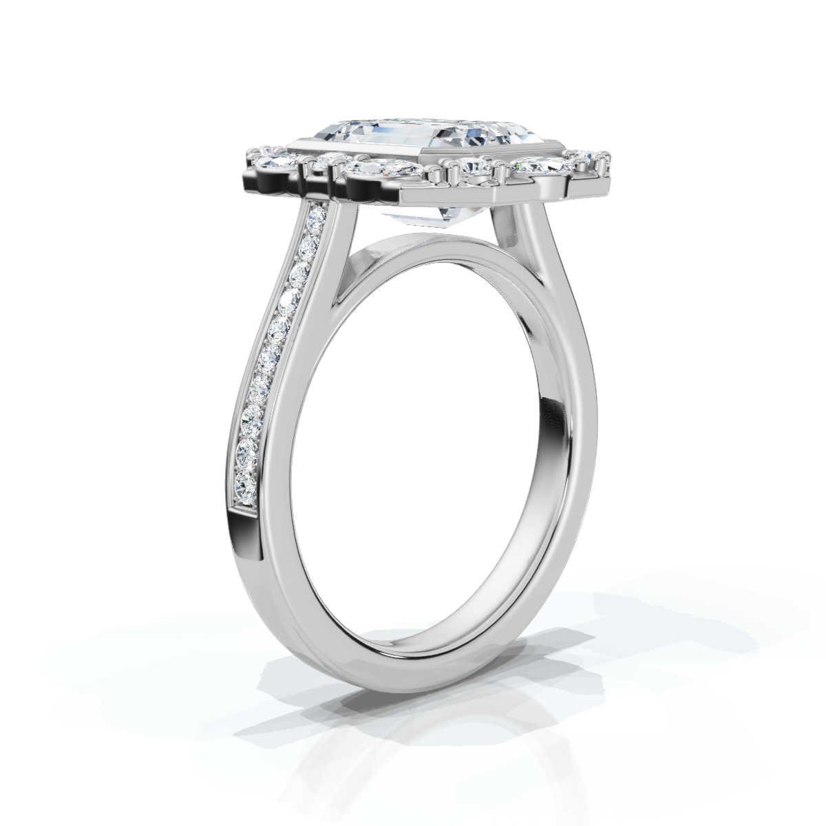 14K Solid Gold Emerald Cut Halo Lab Grown Diamond Engagement Ring