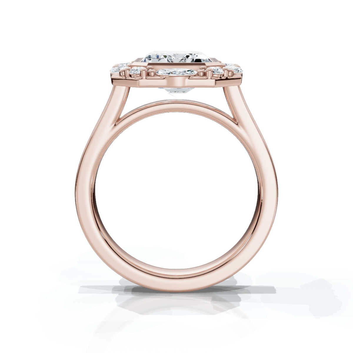 Surrounding the center stone is a dazzling halo of round and marquise-shaped lab-grown diamonds, totaling 0.9 carats. These side diamonds are carefully arranged to enhance the center stone, amplifying its shine and creating a mesmerizing effect. The 2.5mm-wide band, available in white, yellow, or rose gold, offers a sophisticated setting that beautifully complements the diamond’s brilliance. The 1.8mm height and comfort-fit design ensure the ring sits comfortably on the finger, making it ideal for daily wear.