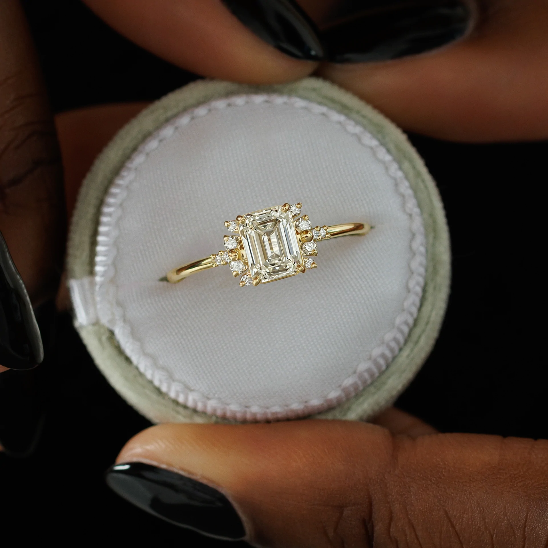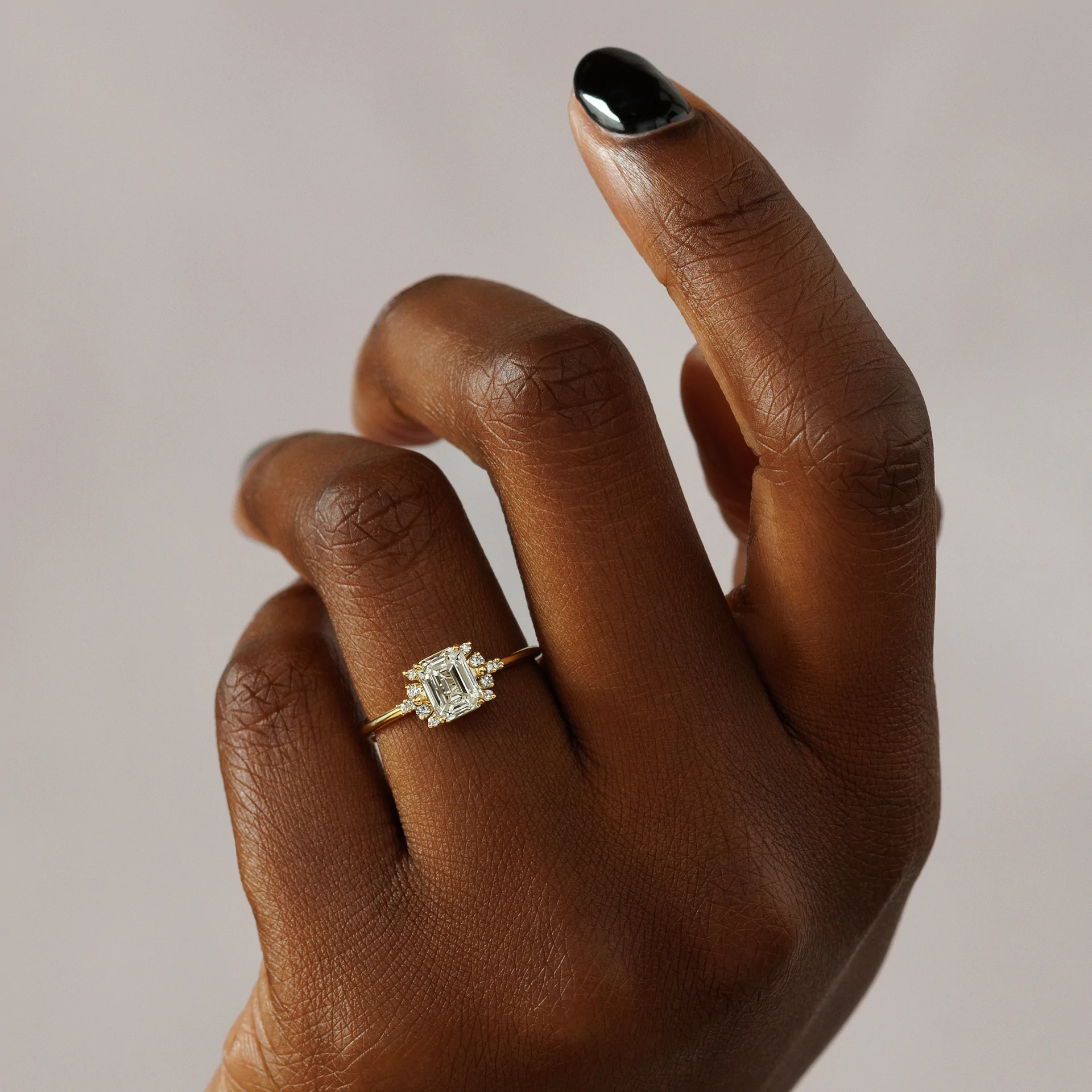 Indulge in the brilliance and ethical luxury of the 14K Solid Gold  Emerald Cut Lab-Grown Diamond Engagement Ring.