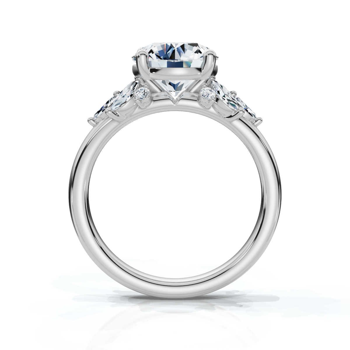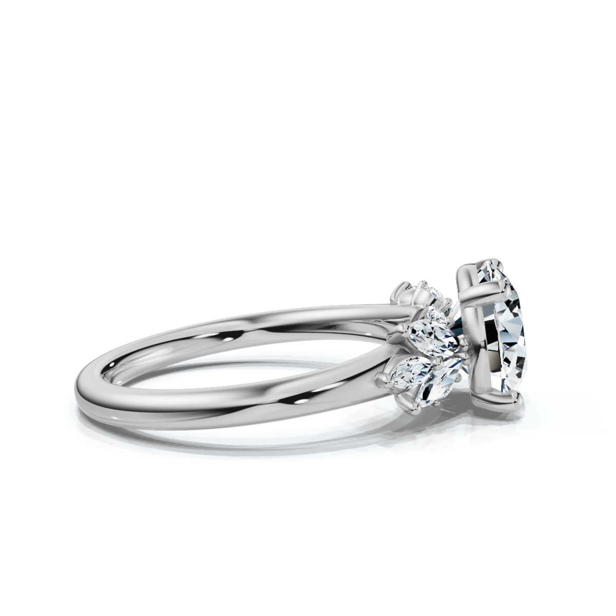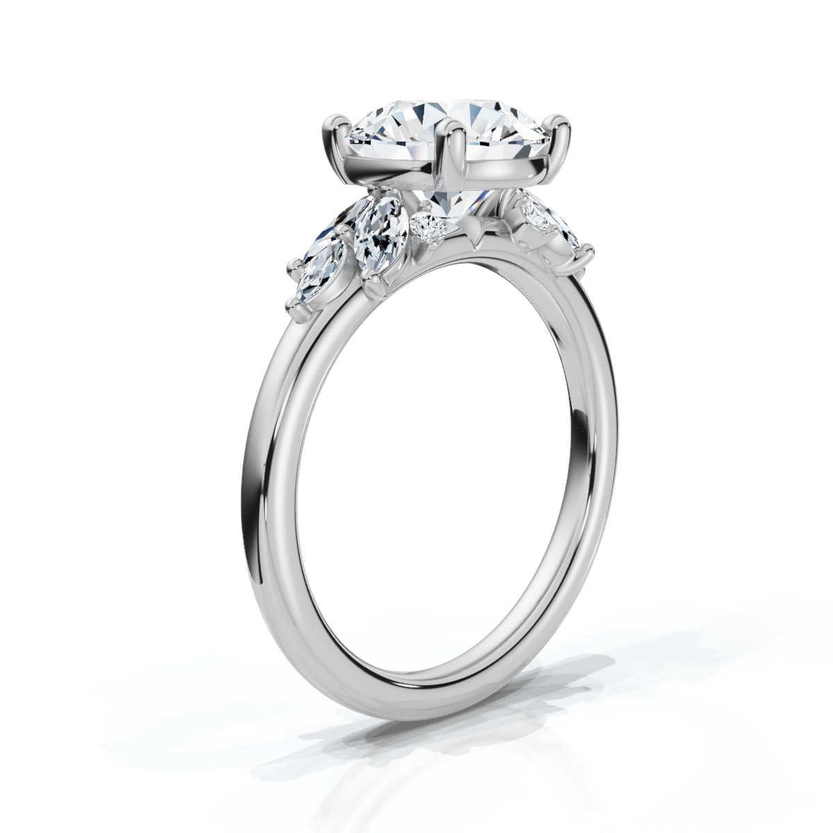 The unique marquise and round diamond combination enhances the ring’s brilliance, offering a luxurious yet contemporary aesthetic. The lab-grown diamonds are ethically sourced and display exceptional fire, clarity, and sparkle, making this ring a responsible and radiant choice. The smooth, polished band ensures comfort while highlighting the breathtaking diamond arrangement.