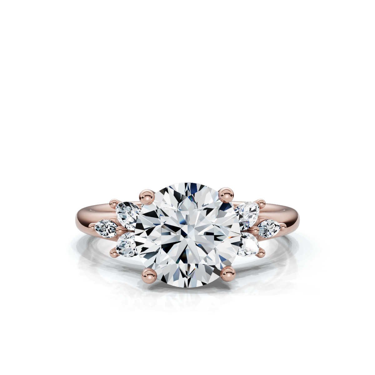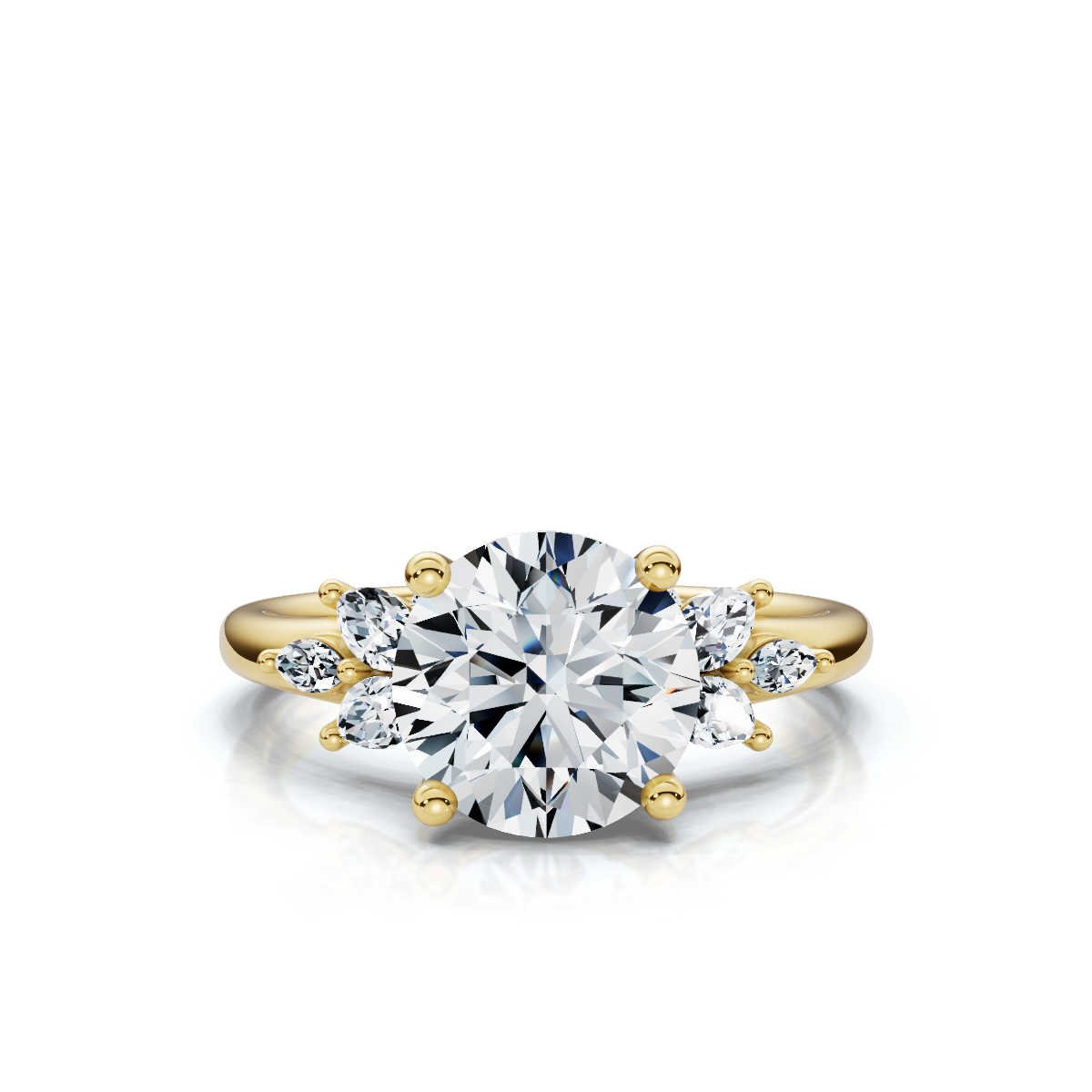 A stunning 14K solid gold engagement ring featuring a lab-grown diamond centerpiece with marquise and round side stones for ultimate brilliance.