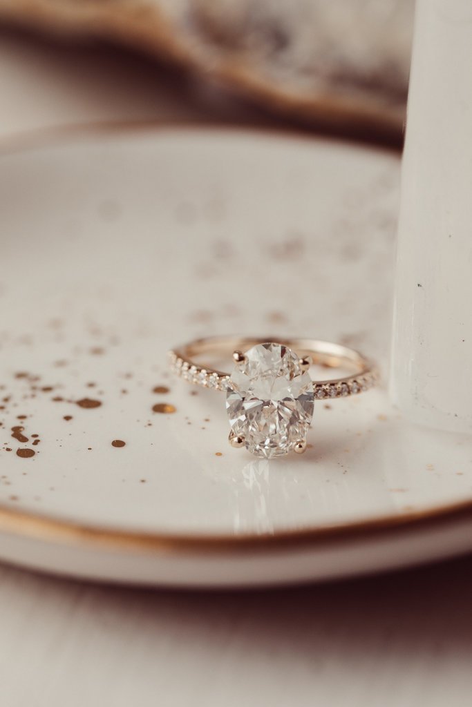 14k Solid Gold Moissanite Diamond Oval Pave Band Solitaire
