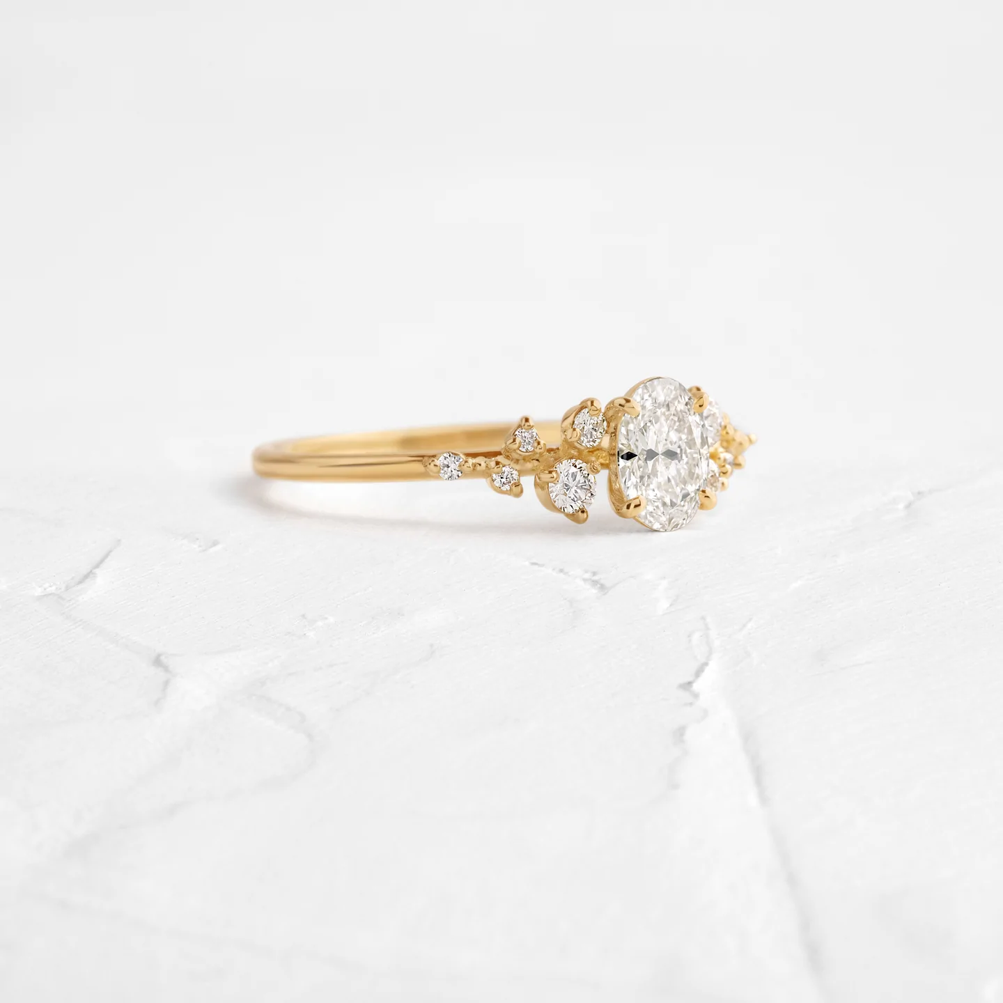 This ring is made from high-quality 14K gold and features an oval-cut diamond, which is famous for its elongated shape that maximizes brilliance and creates an illusion of a larger stone.