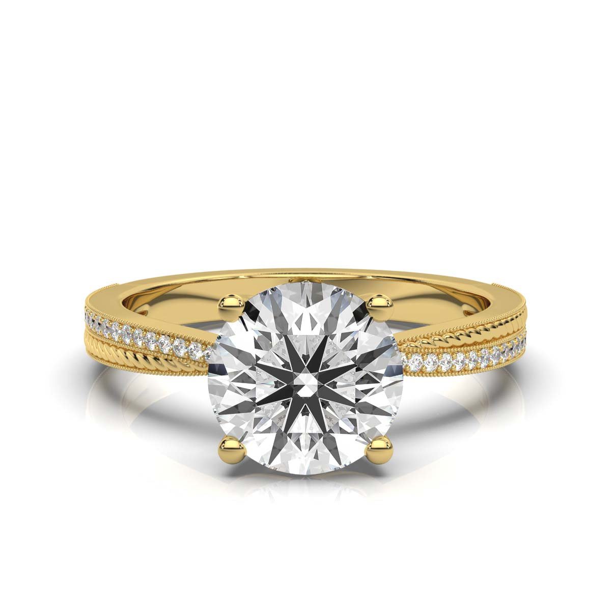 A 2 ct lab-grown diamond in an elegant pavé setting, adorned with 44 sparkling side diamonds (0.1 ct total) in 14K gold. IGI & BIS certified.
