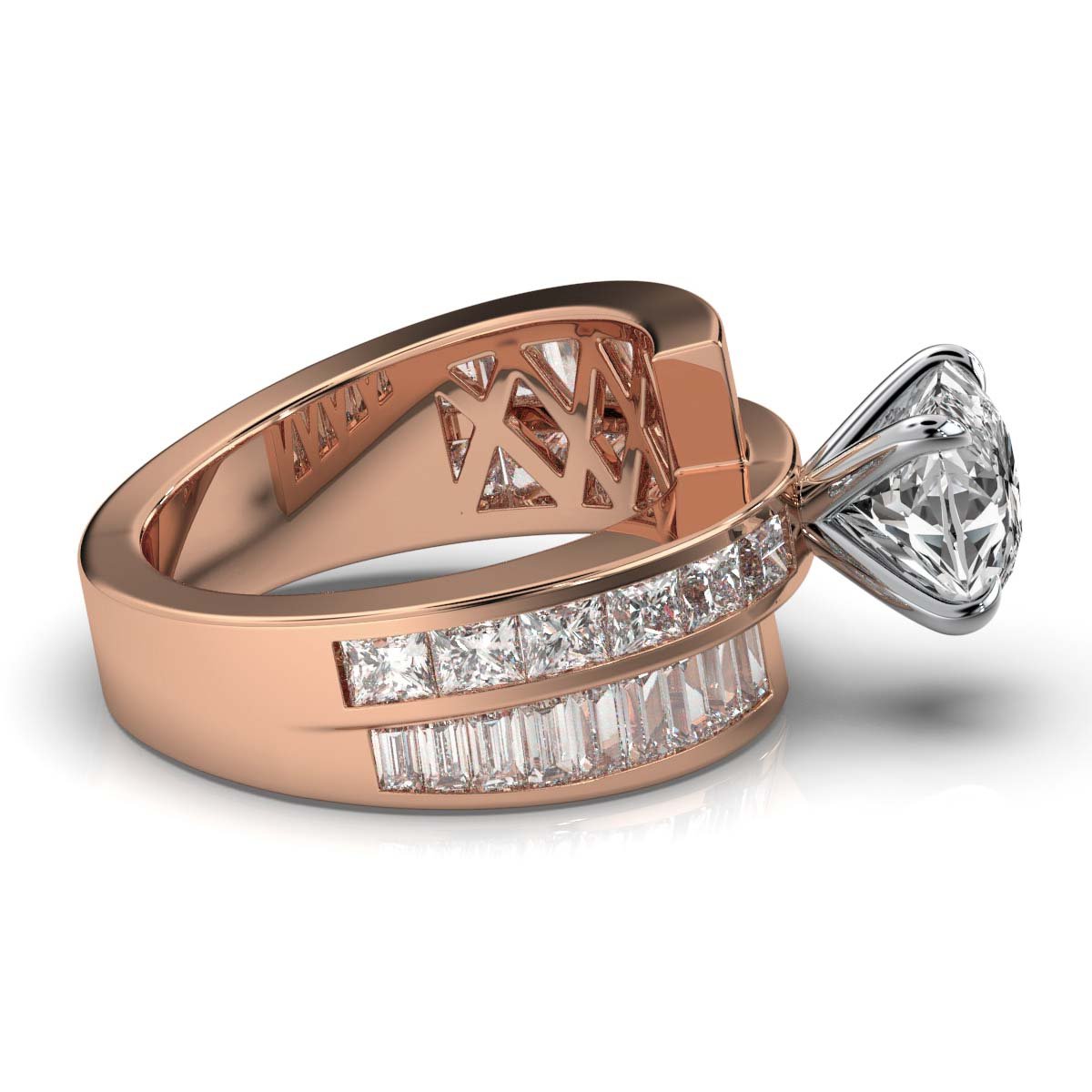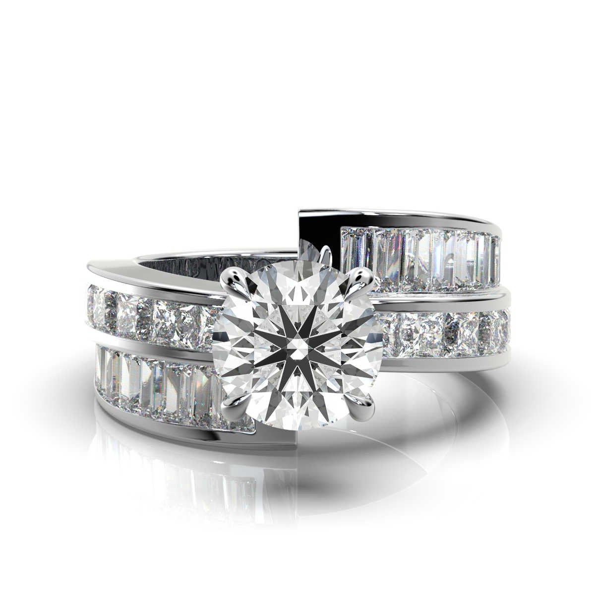 - Side Stones: Moissanite Diamonds (Princess and Baguette Cuts)