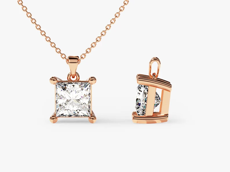- Product Name: 14K Solid Gold Moissanite Princess Diamond Pendant Princess Cut Solitaire Necklace 0.5 CT