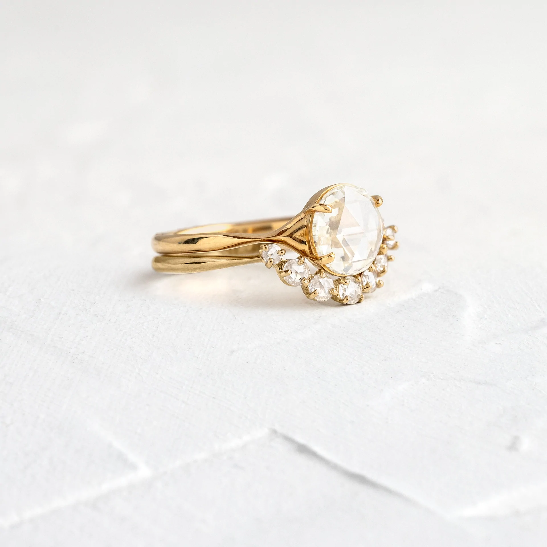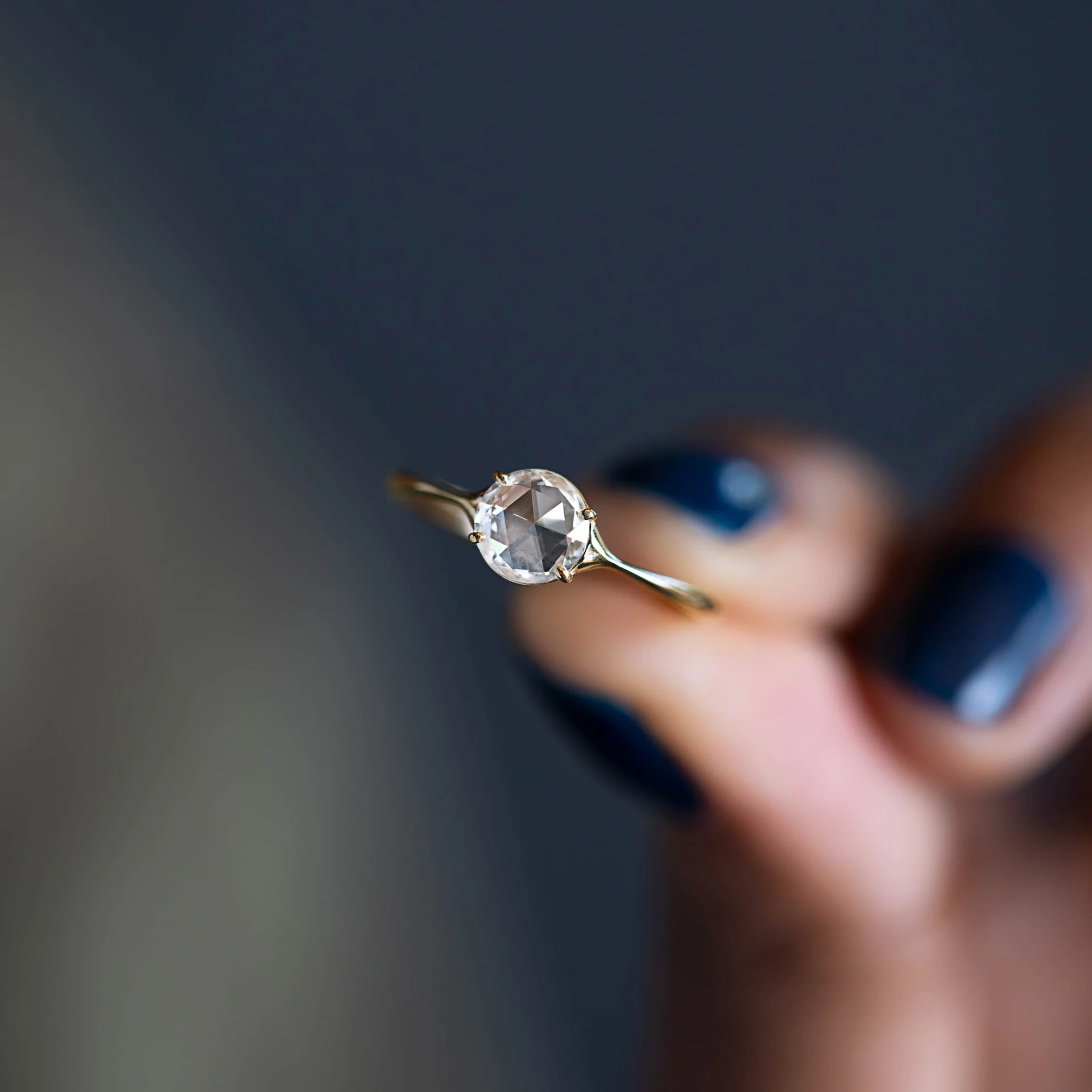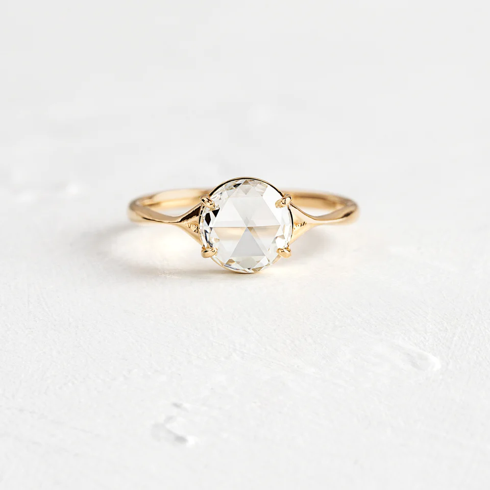 14k Solid Gold Rose Cut Moissanite Diamond Ring