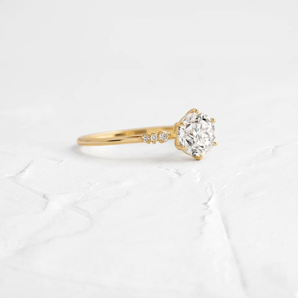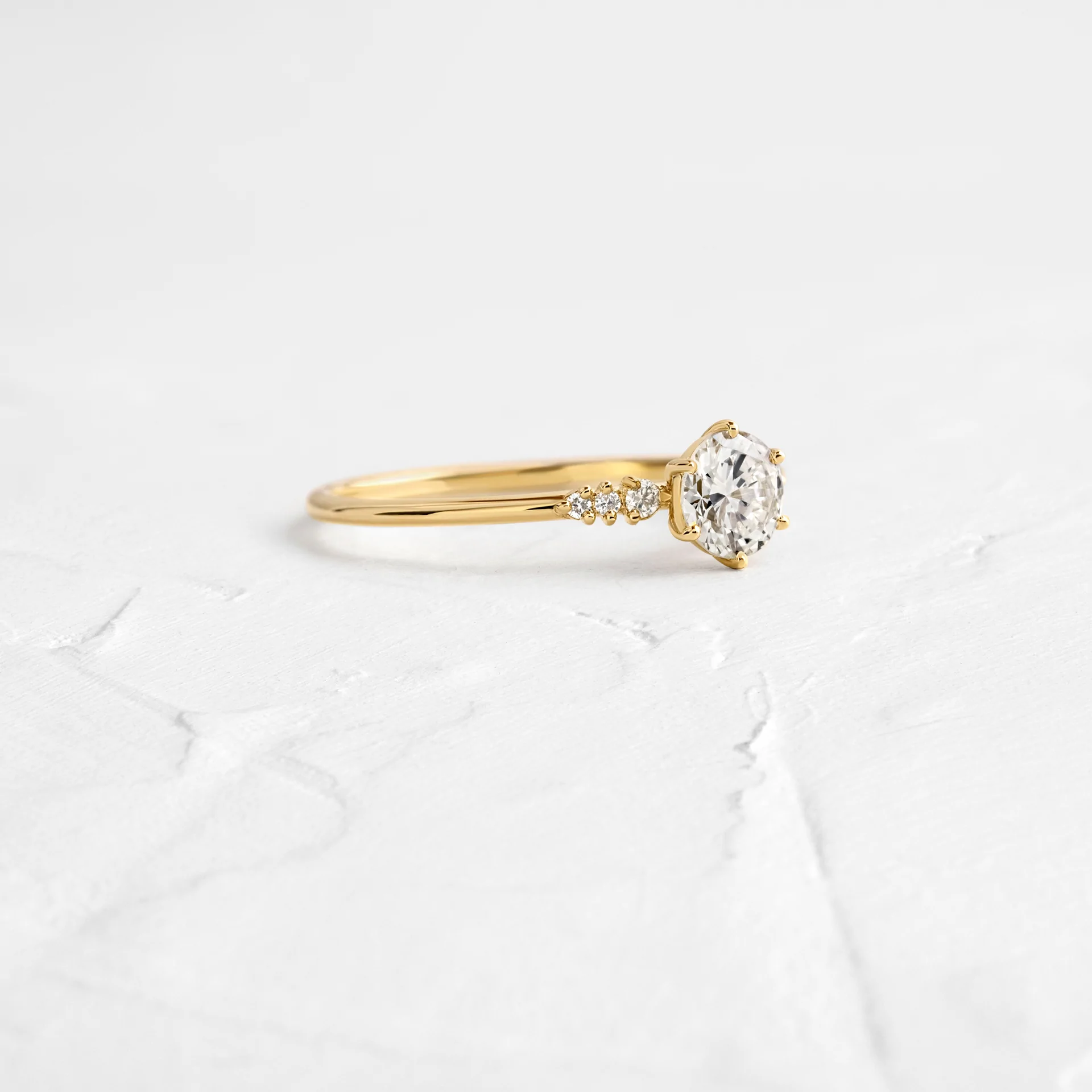 This 14K solid gold engagement ring features a sparkling round cut moissanite diamond—crafted for lasting beauty and a forever symbol of your love story.